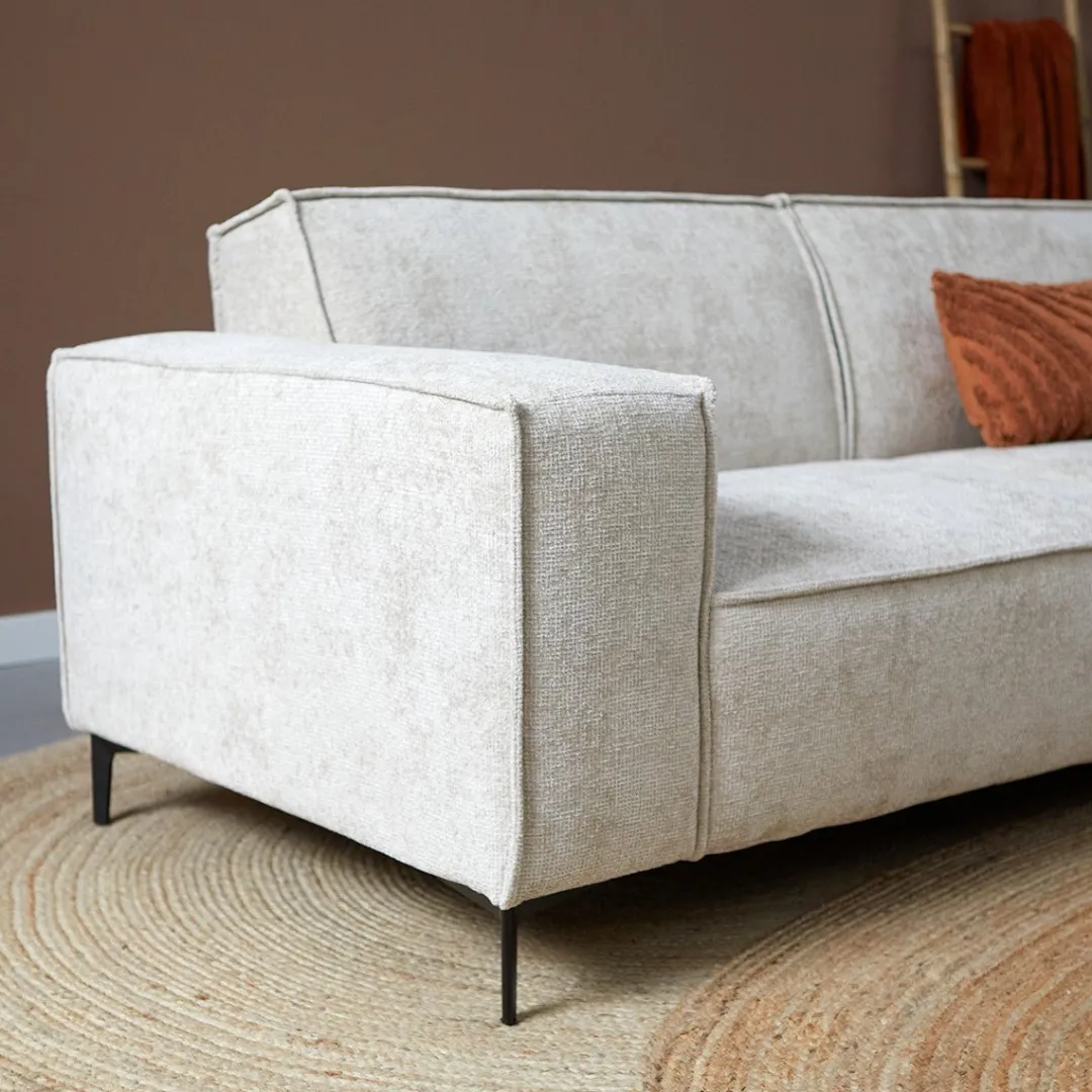 De Bank River Rechts Crème brengt modern design en comfort samen. Met Nosag-veren en een polyether schuimvulling zit je altijd stevig, terwijl de Dacron-toplaag zorgt voor dat extra beetje zachtheid. De krokodillenbek bevestiging houdt de bank strak en netjes in vorm.