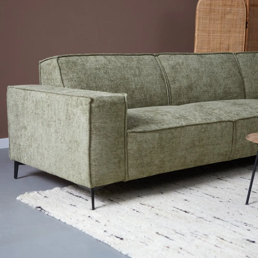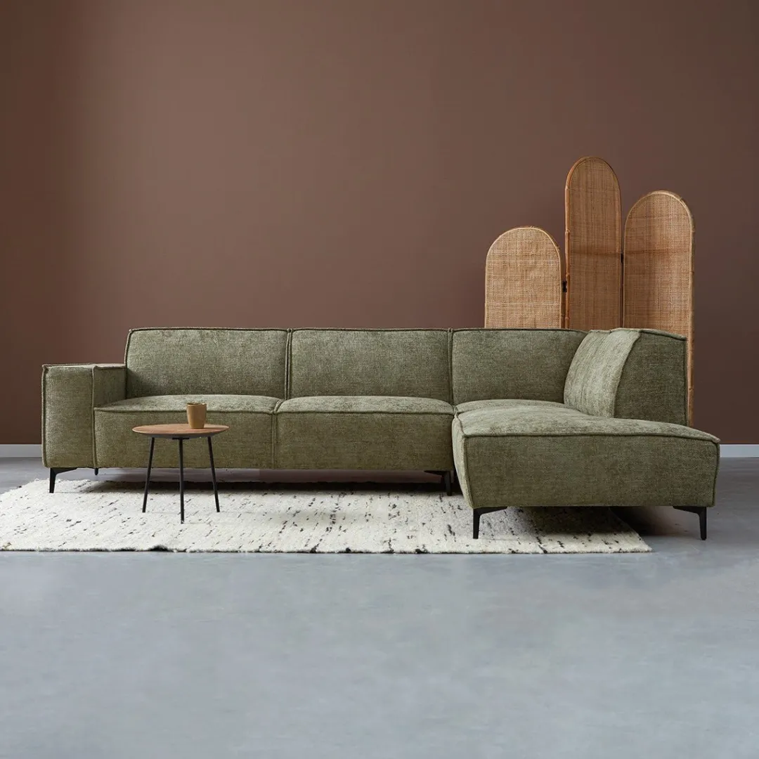 Het royale formaat maakt deze hoekbank de ideale plek om te loungen, terwijl het strakke design je woonkamer een moderne en elegante uitstraling geeft.