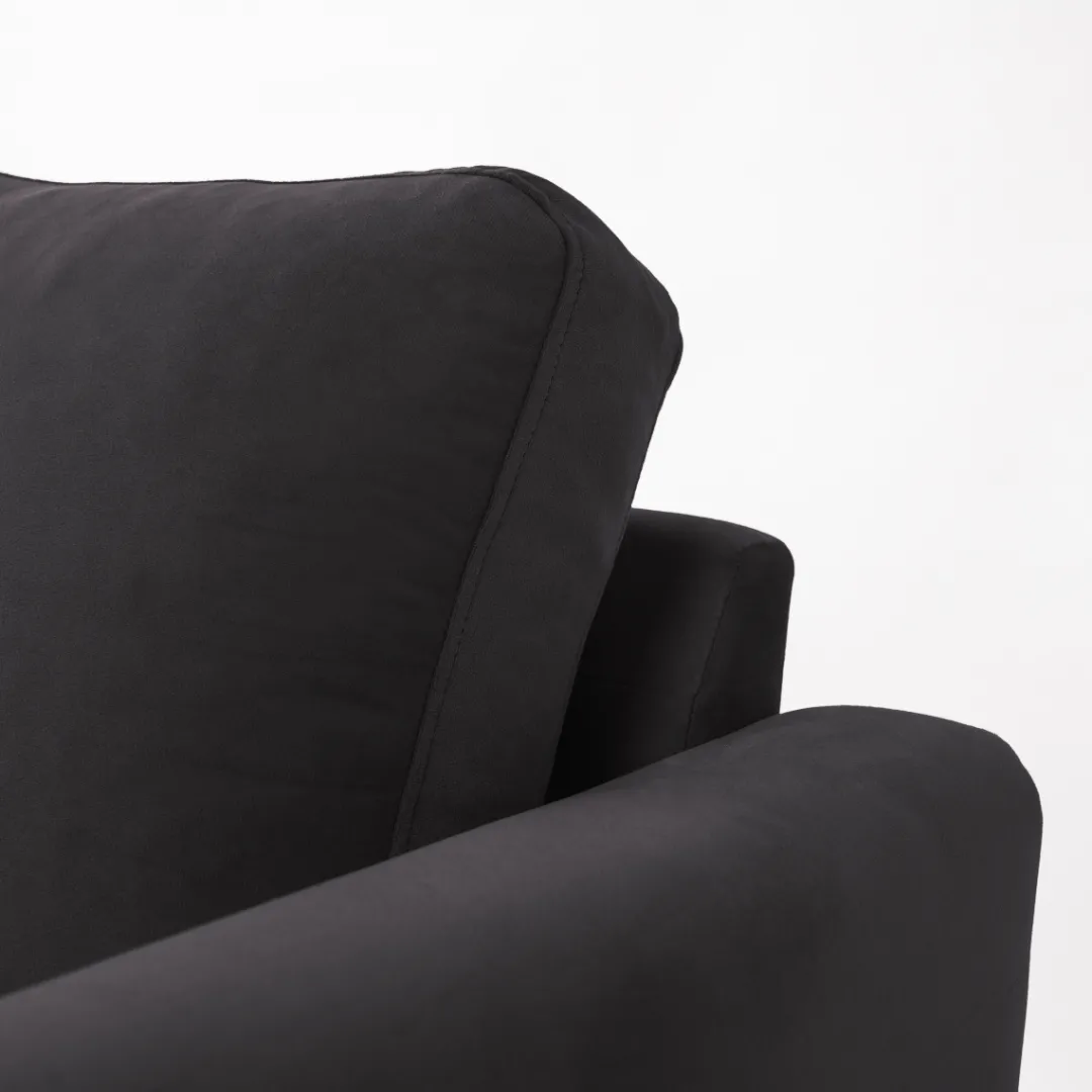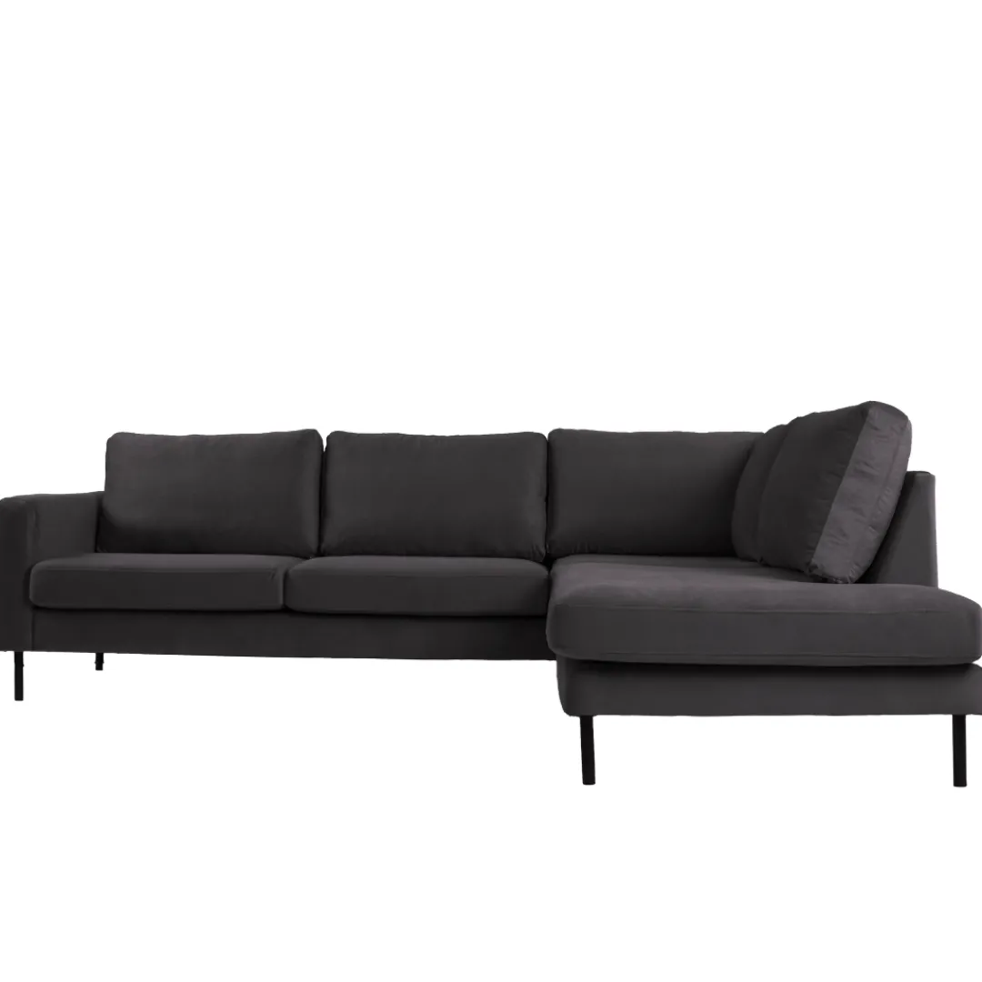 Breng warmte en elegantie in je interieur met hoekbank Sterre. Deze moderne L-vormige bank straalt klasse uit en biedt royaal comfort voor het hele gezin. Dankzij de zachte velours bekleding en het strakke design is Sterre dé eyecatcher in elke woonkamer.
