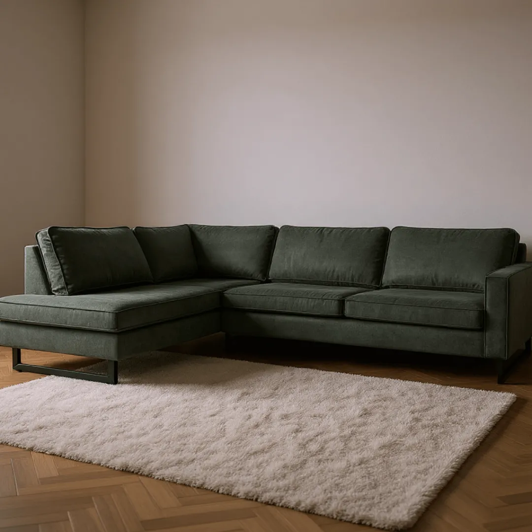 Maak van jouw woonkamer een warme en stijlvolle plek met de Hoekbank Twenty Five. Deze moderne en robuuste bank is uitgevoerd in luxe Missouri-stof en is verkrijgbaar in drie eigentijdse kleuren: Cognac, Antraciet en Groen. Dankzij de ruime afmetingen van 290 x 215 x 82 cm (BxDxH) biedt deze hoekbank alle ruimte voor ontspannen avonden met familie of vrienden.