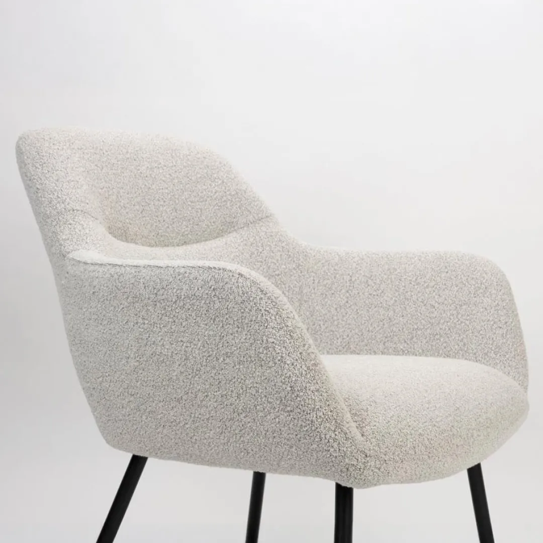 Deze loungefauteuil Filip in zachte bouclé van Jacob Jenzens brengt een aangename sfeer in je interieur. De neutrale kleur en rijke textuur zorgen voor een uitnodigend karakter dat moeiteloos past bij allerlei woonstijlen. Dankzij het tijdloze design voelt de fauteuil warm en verleidelijk, zonder storend aanwezig te zijn.