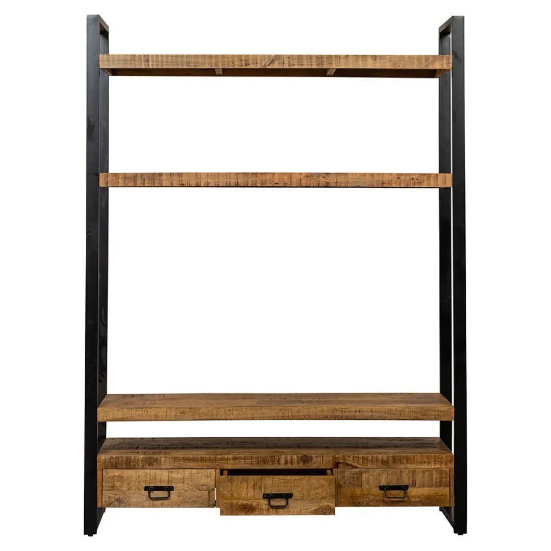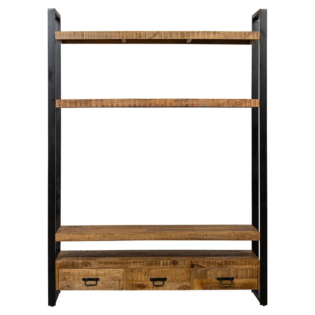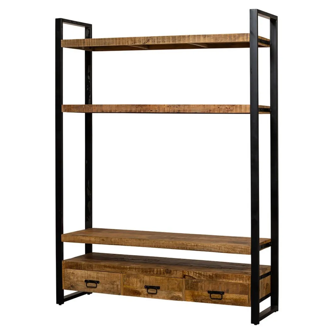 Deze stoere Boekenkast Britt is een stoer en robuust meubel met genoeg ruimte voor je boeken of tijdschriften met daarnaast drie lades en twee planken om andere spullen op kwijt te kunnen. Het grote open vak kan je zelfs gebruiken om de televisie neer te zetten. Zo kan je de kast helemaal inrichten naar jouw smaak, waardoor hij in ieder interieur past.