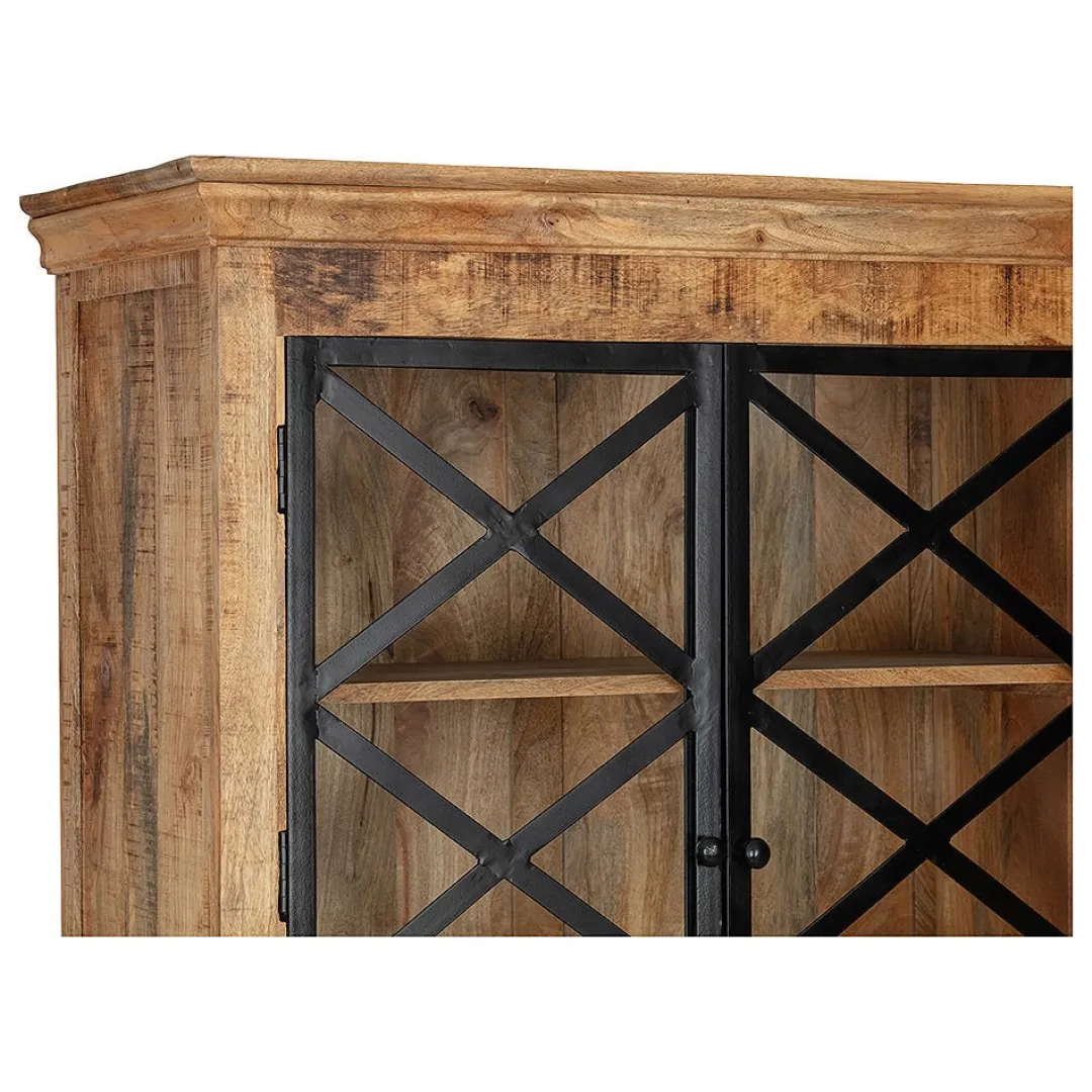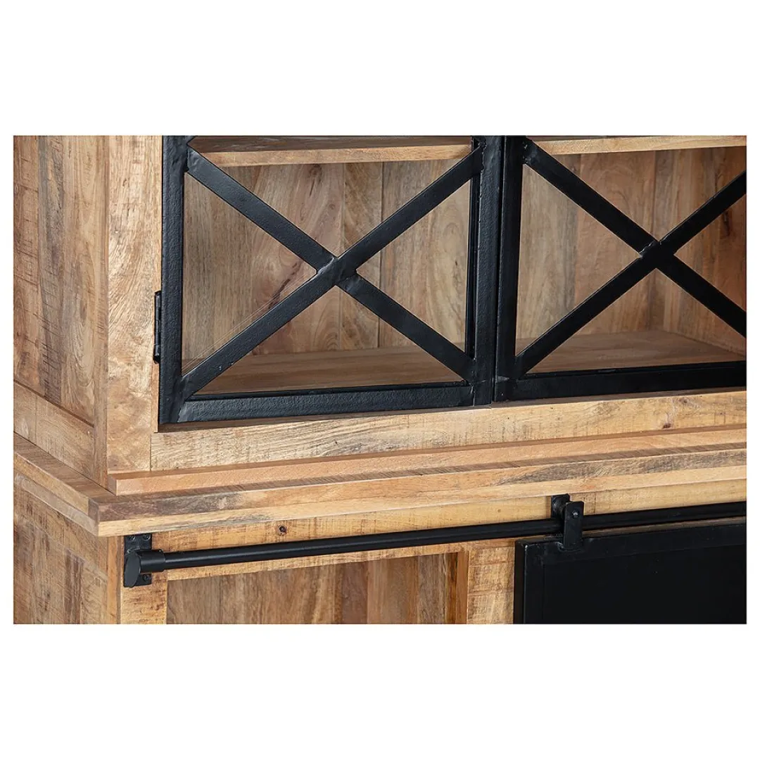 Over het massieve mangohout worden meerdere lagen houtolie en een blanke, natuurlijke bijenwas aangebracht om het hout te beschermen tegen vocht, vuil en kringen. De schuifdeur, het frame van de openslaande deurtjes en de handgrepen zijn allemaal gemaakt van zwart gepoedercoat metaal.