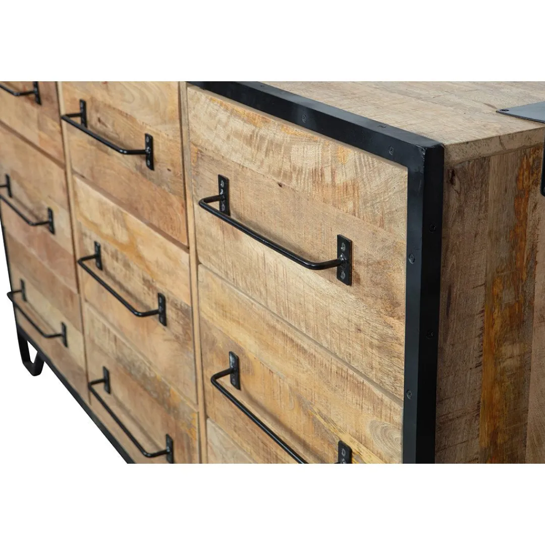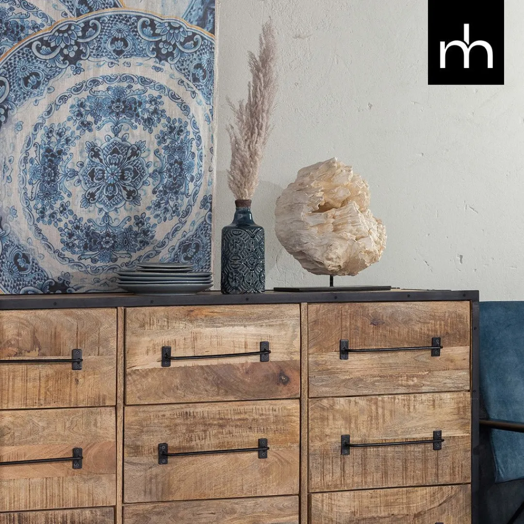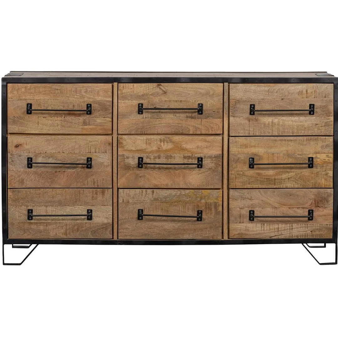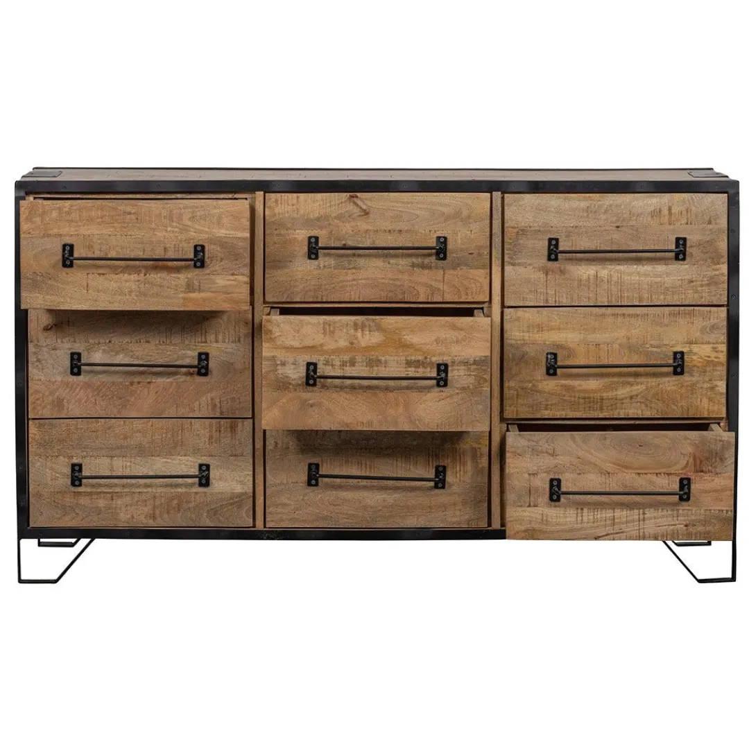 Dit dressoir Baltimore heeft 9 lades die genoeg ruimte bevatten om allerlei eigendommen overzichtelijk op te bergen. Het dressoir is gemaakt van warm mangohout en de lades hebben een stoer van metaal gemaakt handvat, waardoor deze fraaie kast door iedereen zal worden gewaardeerd. Op de bovenkant kunnen vele decoratieve voorwerpen geplaatst worden om de kamer nog fraaier te maken.