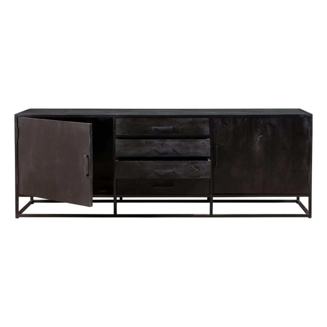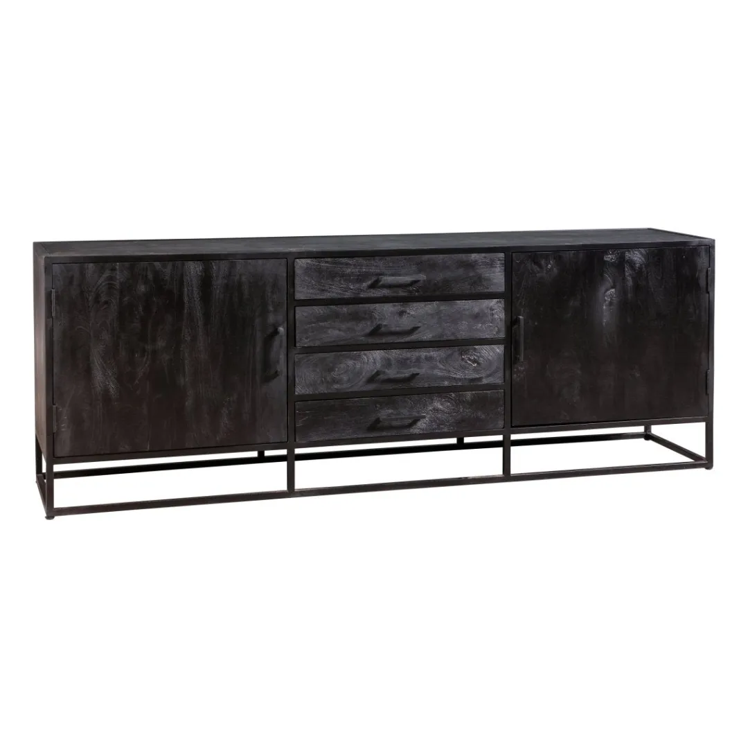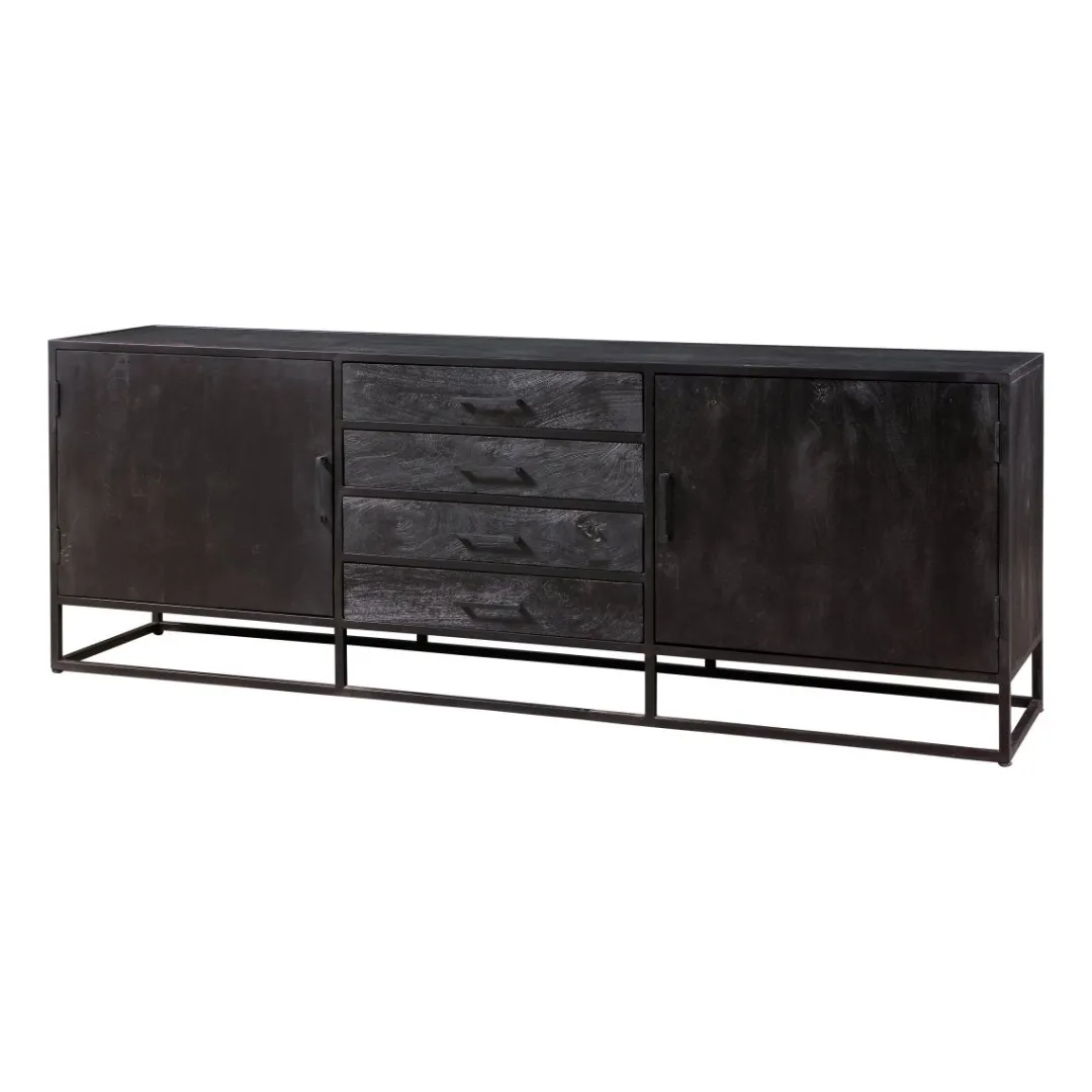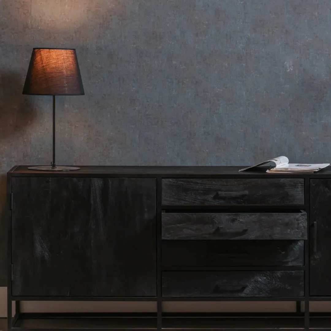 Met de brede variant van het Dressoir Florence voeg je een ruim en stijlvol meubel toe aan je huis. Het zwarte mangohout in combinatie met het zwarte metaal past uitstekend in ieder interieur. Dankzij de twee kastjes en de vier brede lades beschikt het meubel over veel ruimte om allerlei eigendommen op te kunnen bergen.
