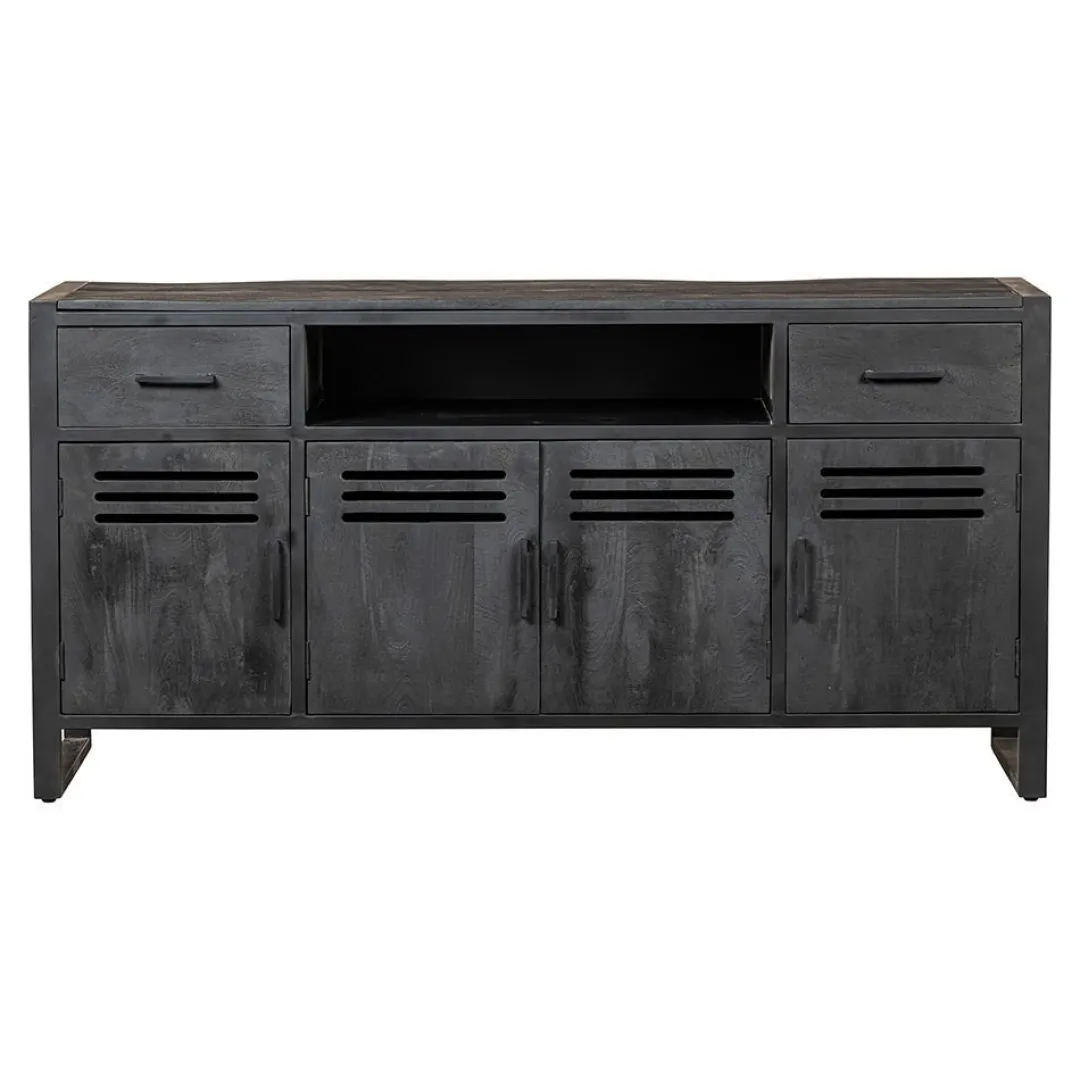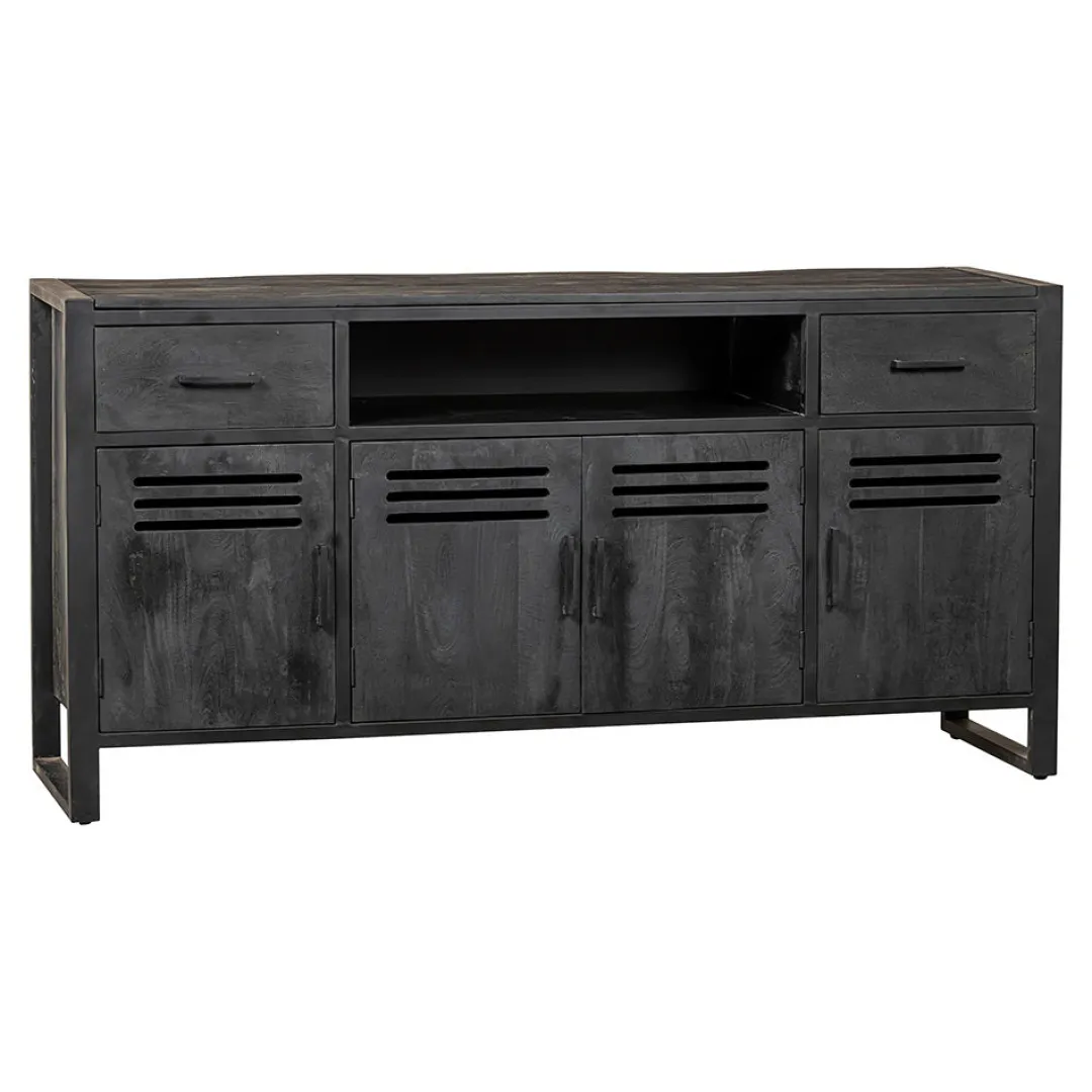 Dressoir Henderson is geïnspireerd op de oude lockerkasten die je misschien nog kent van vroeger. De deurtjes in combinatie met het zwarte mangohout en de stalen frames geven je woon- of slaapkamer een stoere en industriële uitstraling. In de lades en in de ruime vakken achter de deurtjes is genoeg ruimte om van alles in op te bergen, zoals belangrijke papieren, knutselspullen of serviesgoed.