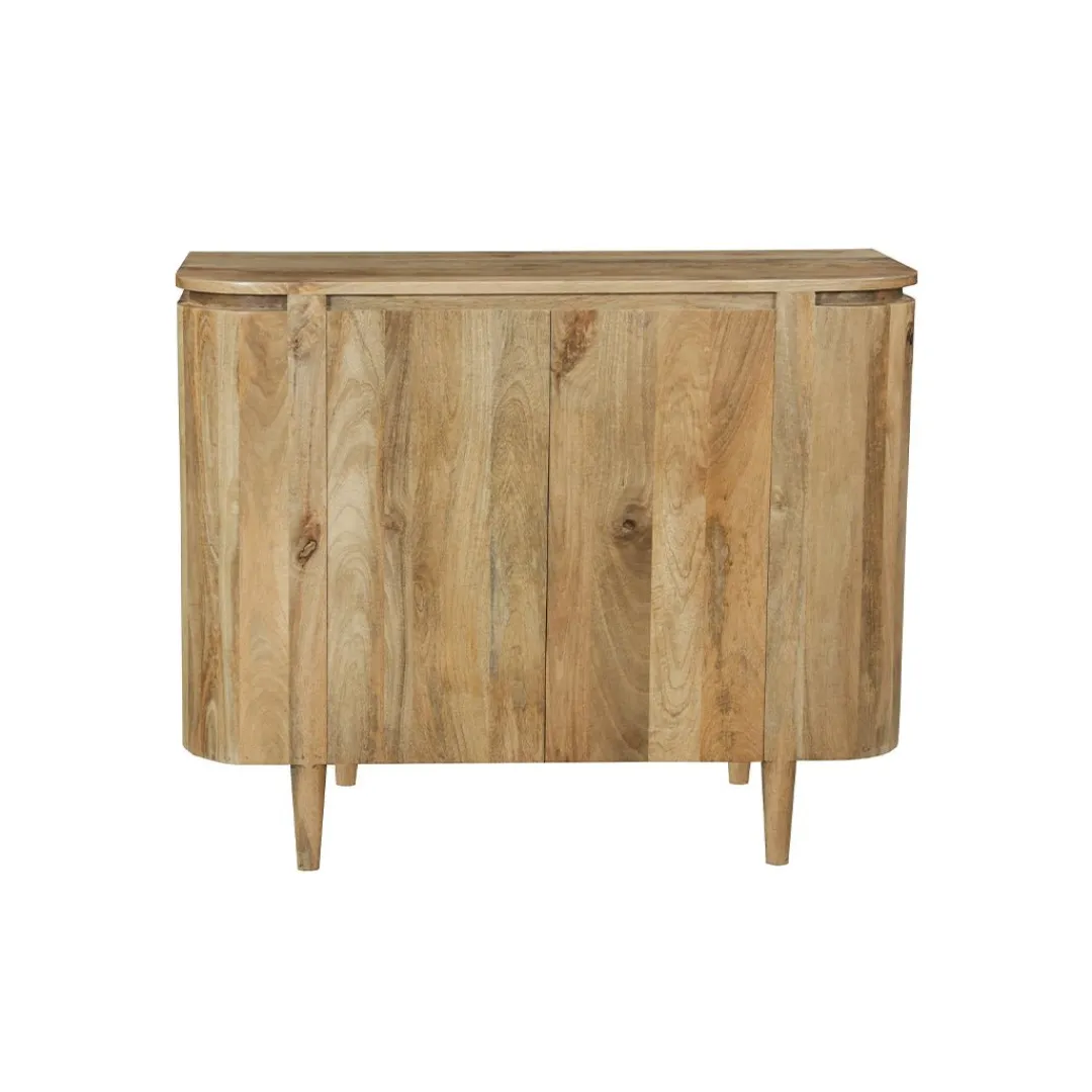 Mangohouten Dressoir Pilano 100 cm geeft je interieur een warme en stijlvolle uitstraling. De afgeronde vormen zorgen voor een zacht en modern ontwerp dat mooi tot zijn recht komt in verschillende woonruimtes.