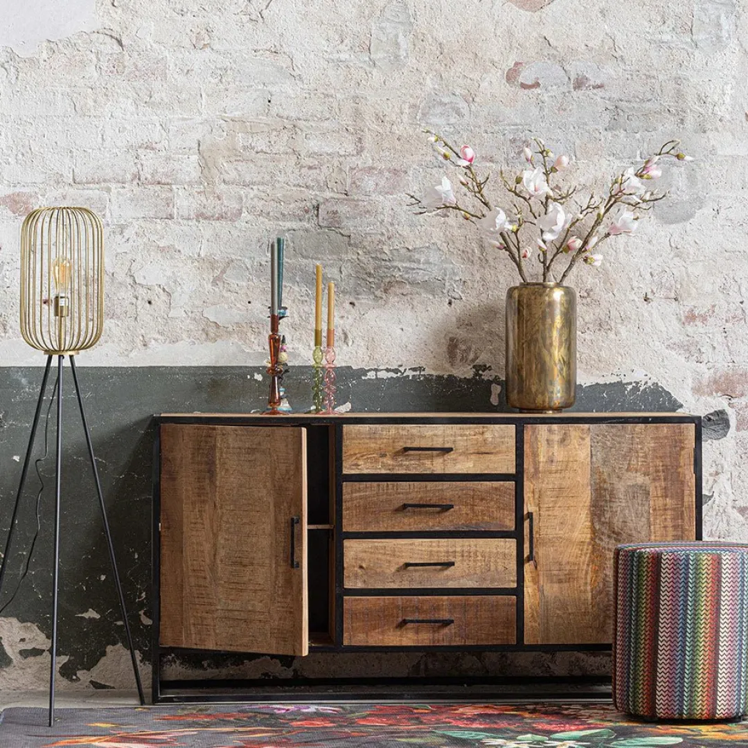 Dit stoere dressoir uit onze San Antonio collectie zal de blikvanger zijn van iedere woning. De kast heeft een fraai ontwerp van twee deuren aan de zijkanten met vier lades in het midden, waarmee het dressoir beschikt over veel opbergruimte voor allerlei eigendommen.