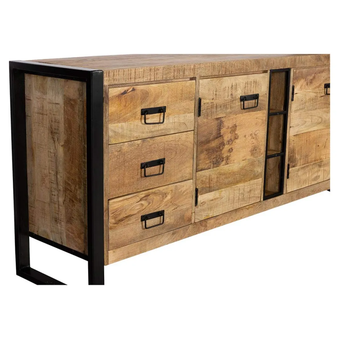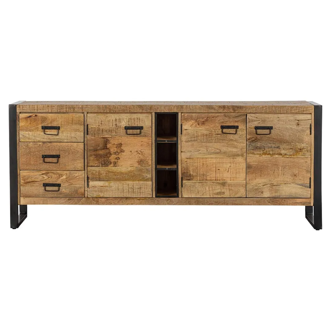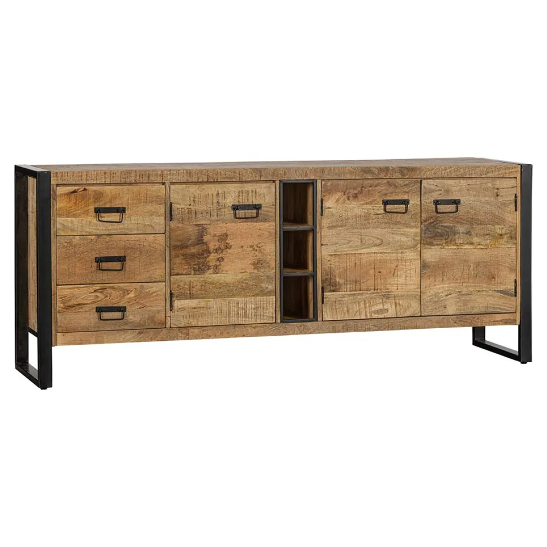Heb je de grote wandkast uit de Stockton-collectie al aangeschaft en ben je nog op zoek naar een bijbehorend dressoir? Dit mooie Stockton-dressoir doet namelijk echt niet onder voor de grote kasten. Het dressoir heeft een uniek, robuust ontwerp dat bestaat uit drie lades, drie deurtjes en drie open vakken die beschikken over veel opbergmogelijkheden.