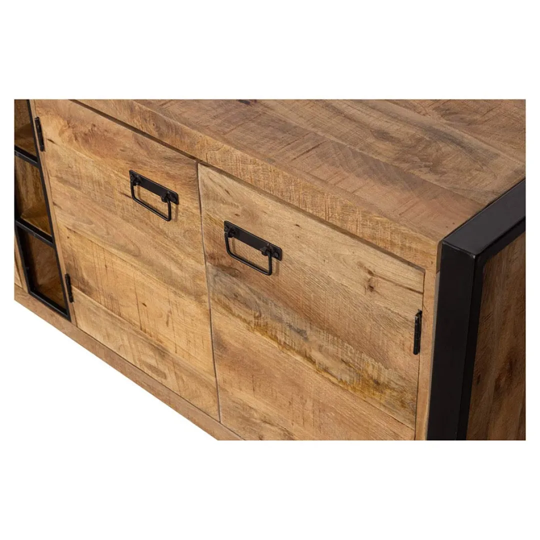 Over het massieve mangohout worden meerdere lagen houtolie en een blanke, natuurlijke bijenwas aangebracht om het hout te beschermen tegen vocht, vuiligheid en kringen. Het middelste frame, de handgrepen en de poten zijn allemaal gemaakt van zwart gepoedercoat metaal.