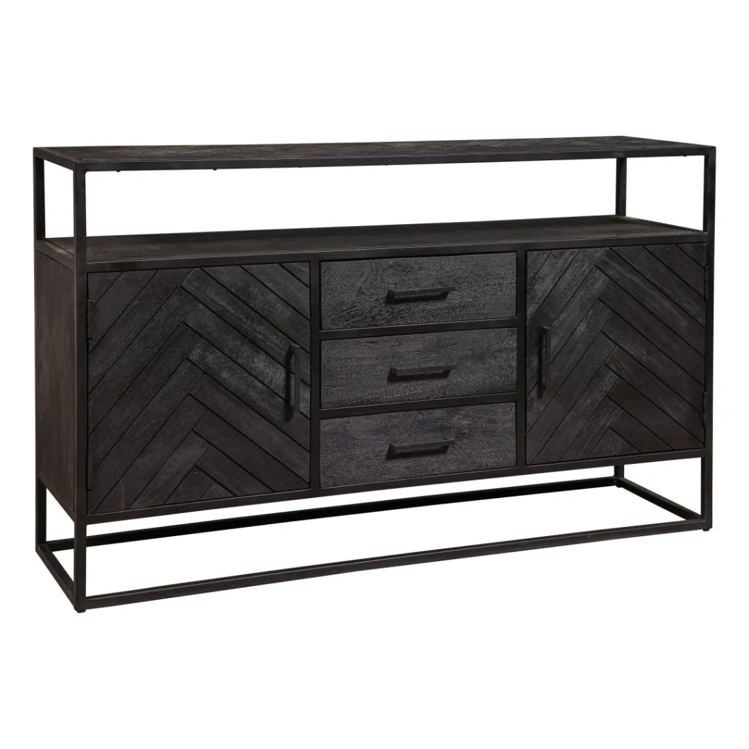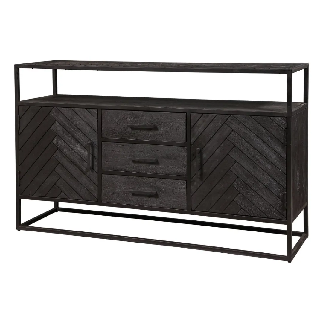 Dit schitterende dressoir uit de Toronto-serie heeft een uniek en eigentijds design. Het ruimtelijke metalen frame laat het meubel perfect passen in een industrieel interieur en het visgraatmotief geeft het geheel een stijlvolle twist. Door de speelse indeling kan je veel kanten op met dit meubel. Zo zijn er genoeg opbergmogelijkheden in de lades en achter de deurtjes en daarnaast kunnen de open vakken op veel verschillende manieren worden gebruikt, bijvoorbeeld voor een mooie collectie boeken.