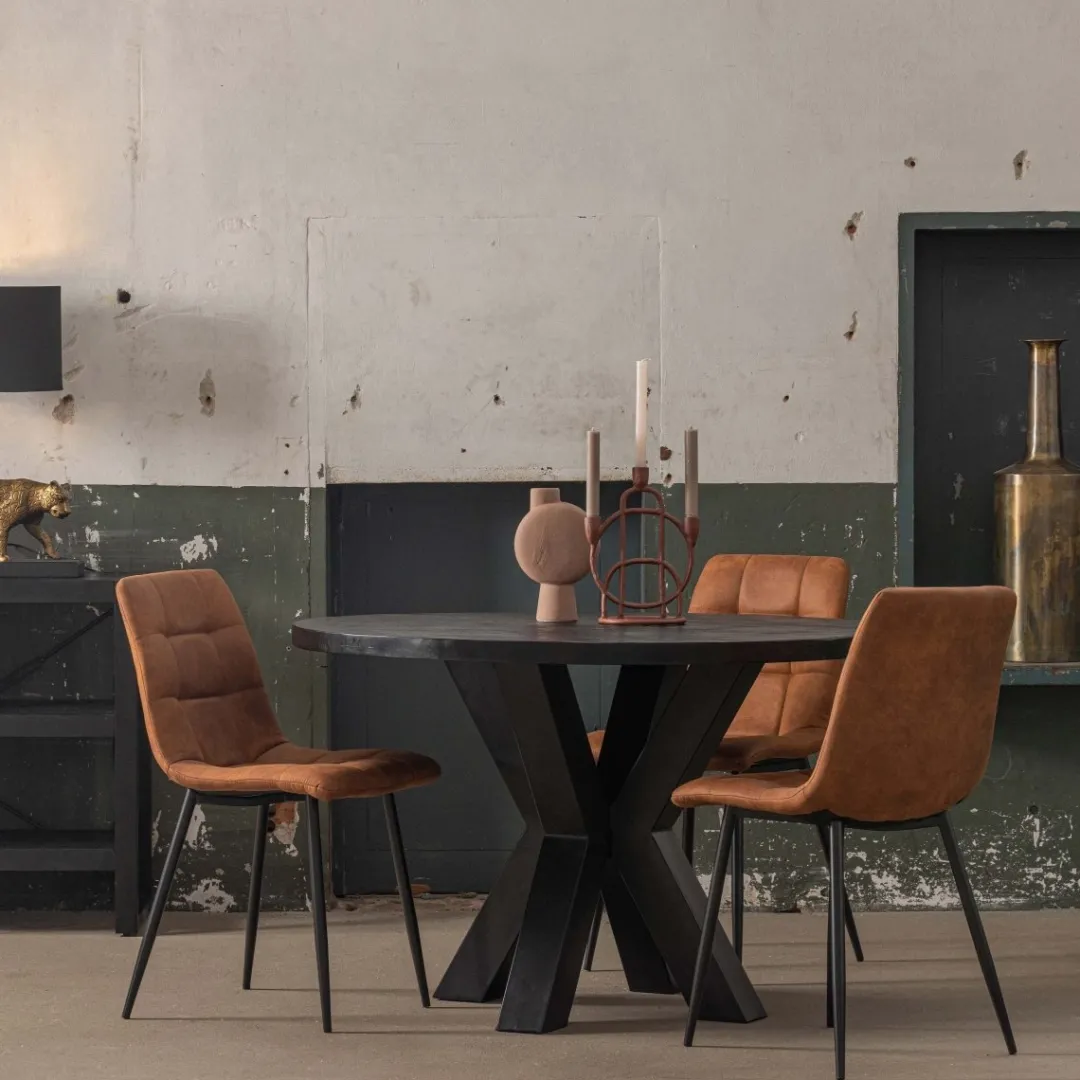 Aan een ronde tafel van zwart mangohout is het aangenaam dineren. De vorm van het blad zorgt ervoor dat je gemakkelijk een gesprek met de hele tafel voert, en dat is wel zo gezellig natuurlijk. Dit is de kleinste uit de Madison Black-serie, waardoor er in elke ruimte wel een plekje vrijgemaakt kan worden.