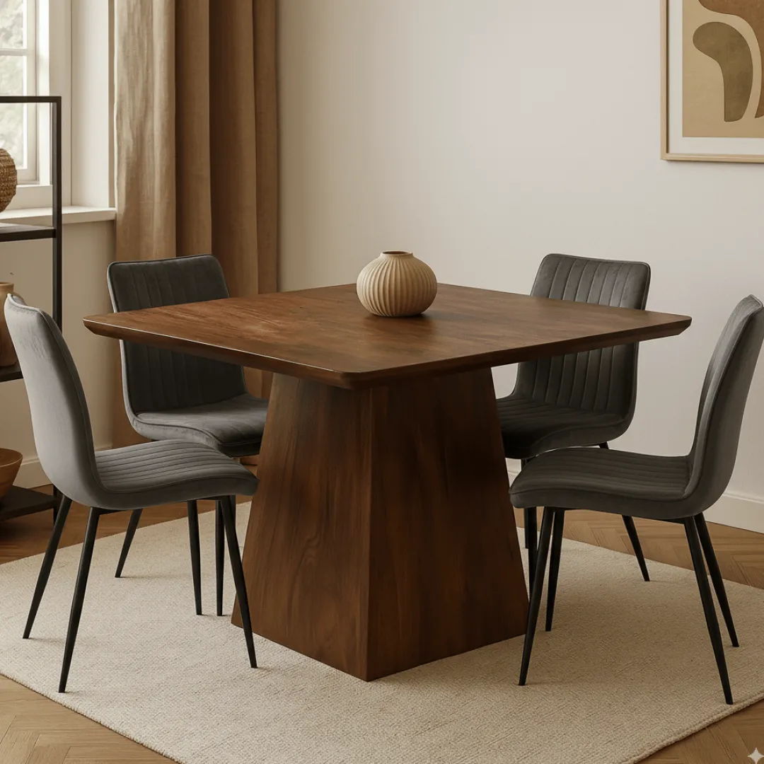 Ontdek de charme van de Mangohouten eettafel Nova in het formaat 90×90 cm. Deze vierkante tafel is gemaakt van massief mangohout en straalt een warme, natuurlijke look uit die perfect past in zowel moderne als industriële interieurs. Het robuuste tafelblad in combinatie met het strakke onderstel zorgt voor een stoere, maar stijlvolle uitstraling.