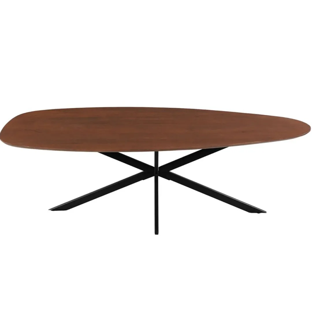 De stevige, zwart gepoedercoate metalen matrixpoot geeft de tafel een stoer, industrieel karakter en biedt optimale stabiliteit. Dankzij de combinatie van warm hout en robuust metaal past de Laura perfect in uiteenlopende interieurstijlen, van landelijk tot industrieel.
