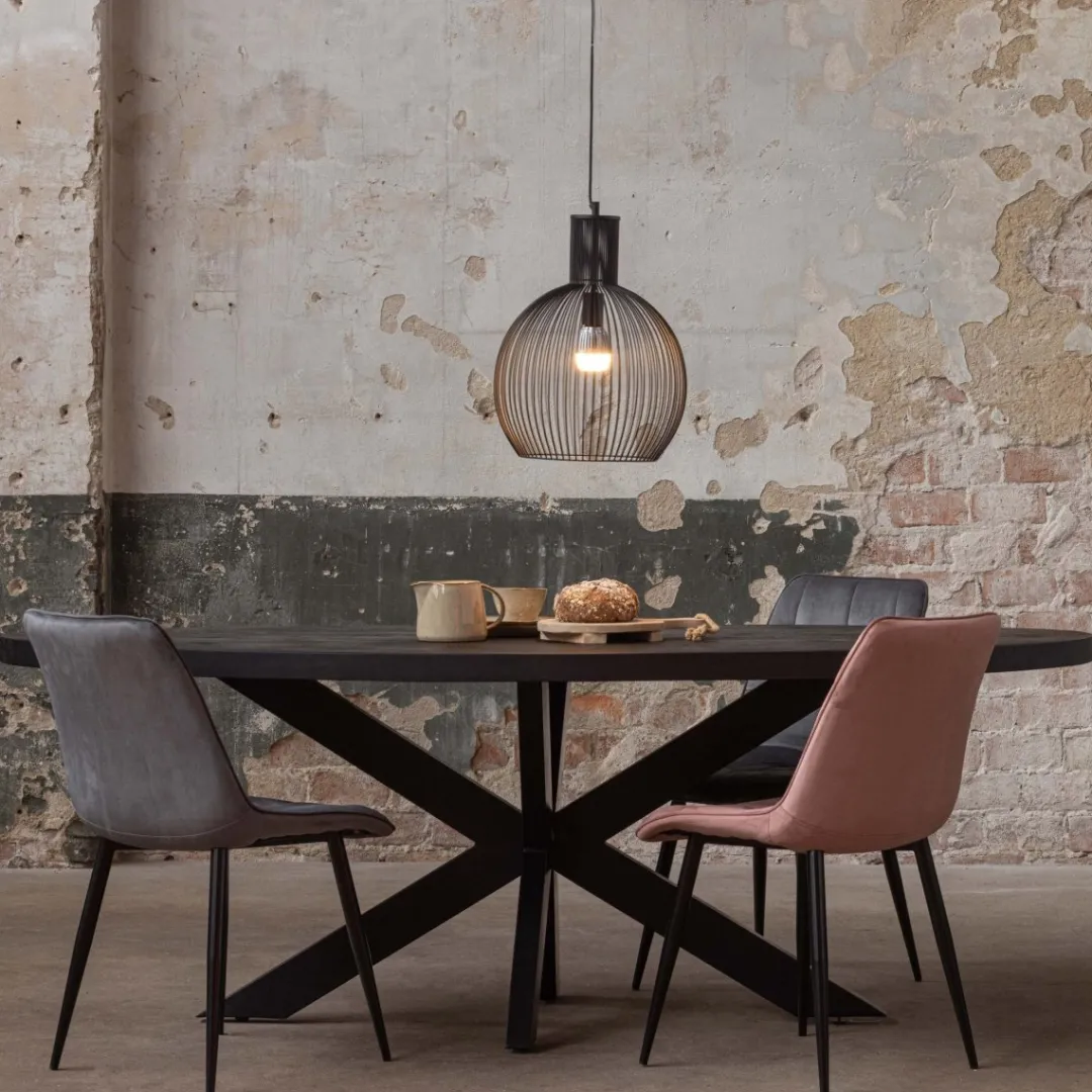 Deze fraaie, grote eettafel heeft een ovale vorm wat voor enorm veel ruimte en gezelligheid in de eetkamer zorgt. De metalen matrixpoot zorgt voor een chique uiterlijk, waardoor de tafel moeiteloos in elke grote ruimte past.