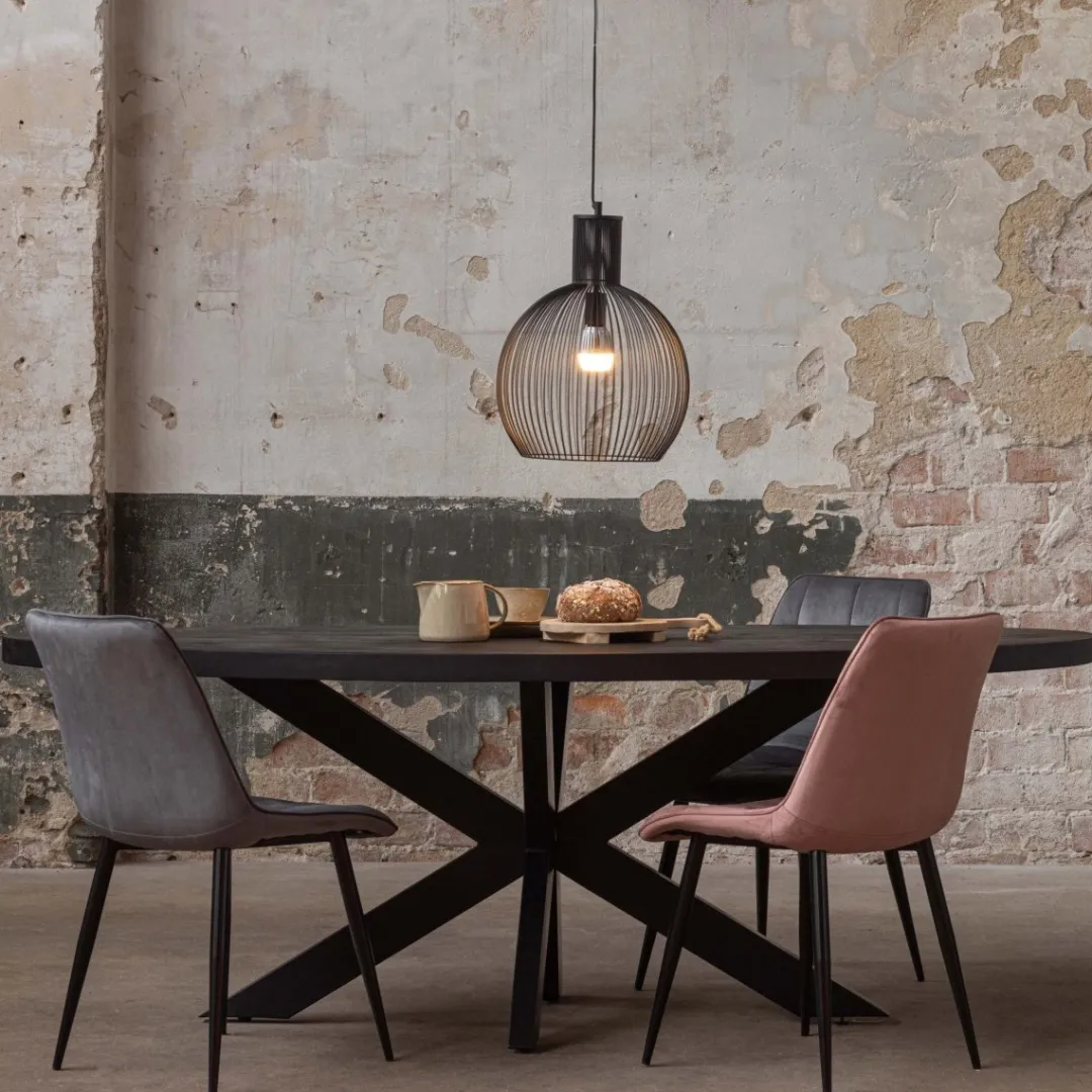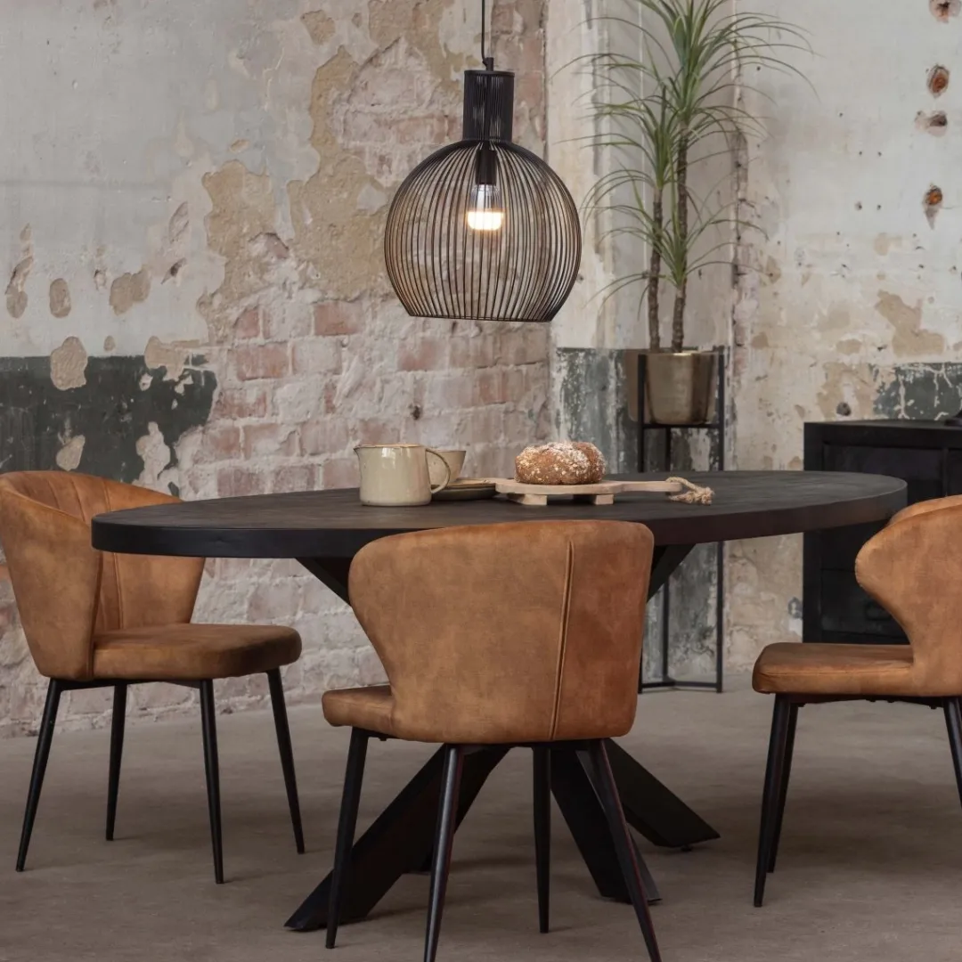 Dit is onze grootste zwarte eettafel uit onze uitgebreide Tulsa-collectie en het is de stoerste van allemaal! De tafel heeft een robuust blad dat wordt ondersteund door een grote metalen matrixpoot. Door de vorm neemt de tafel ook nog eens een stuk minder ruimte in dan een rechthoekige tafel van dezelfde lengte.