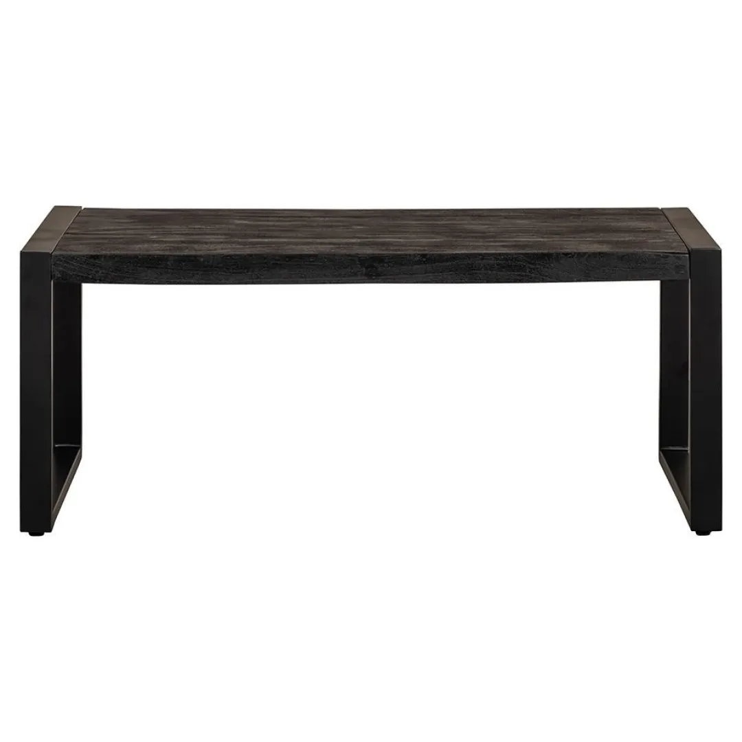 Het mangohout is massief en is eerst gezandstraald, waarna het behandeld wordt met zwarte verfbeits en tenslotte wordt afgewerkt met een donkere, natuurlijke bijenwas om het hout te beschermen tegen vocht, vuiligheid en kringen. De poten zijn gemaakt van zwart gepoedercoat metaal.
