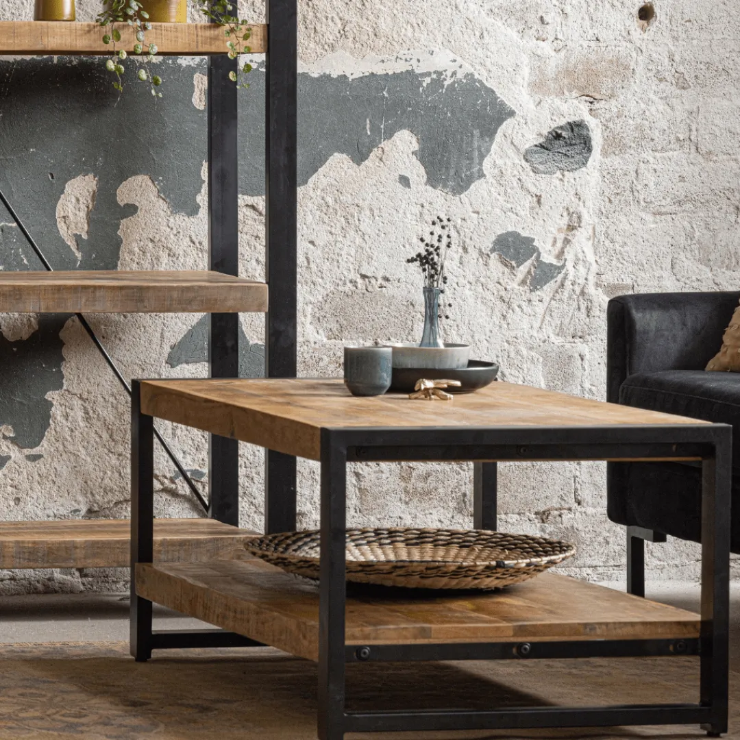 Deze salontafel Britt is een eenvoudige salontafel die toch een klein beetje extra opbergruimte biedt! Het tafeltje beschikt namelijk over twee planken, waar bijvoorbeeld glazen of planten op kunnen staan.