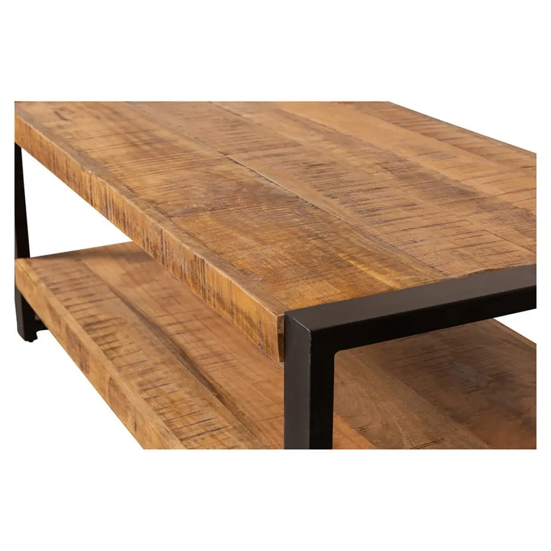 Over de massieve mangohouten tafelbladen worden meerdere lagen houtolie en een blanke, natuurlijke bijenwas aangebracht om het hout te beschermen tegen vocht, vuiligheid en kringen. De poten zijn gemaakt van zwart gepoedercoat metaal.