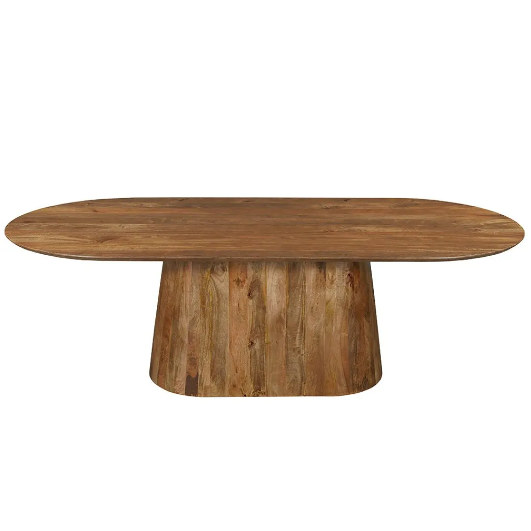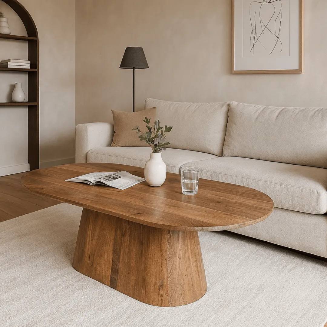 Salontafel Nova Capsule 120 cm is een stijlvolle blikvanger voor je woonkamer. Het capsulevormige blad is gemaakt van naturelkleurig mangohout en rust op een stevig kegelvormig onderstel van hetzelfde materiaal. Dankzij de warme uitstraling van het hout krijgt je interieur direct een sfeervolle en natuurlijke touch.