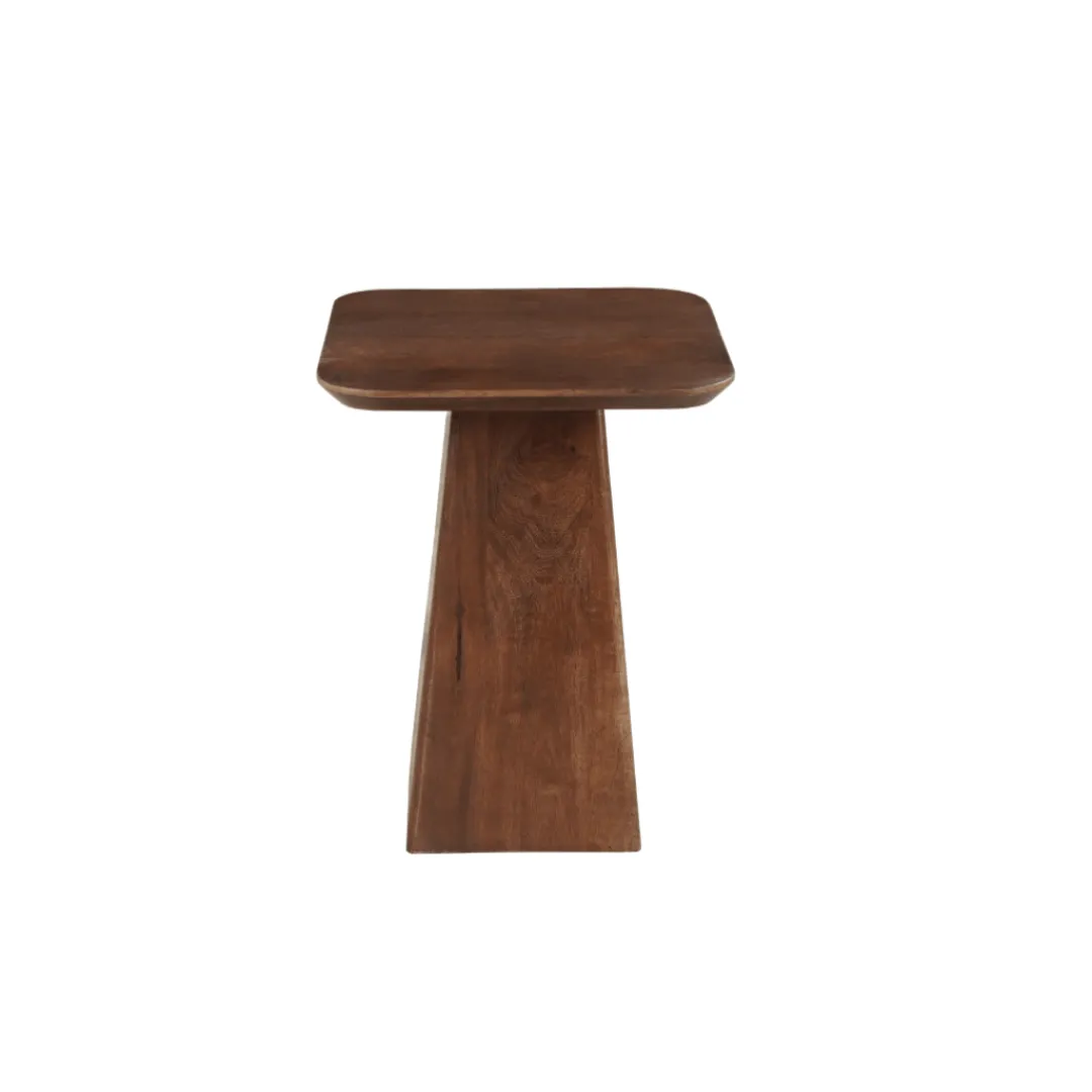 De salontafel Nova is een stijlvolle, vierkante bijzettafel gemaakt van massief mangohout. Dankzij het strakke ontwerp en de warme houtkleur past deze tafel perfect in zowel moderne als landelijke interieurs. De natuurlijke houttekening en de afgeronde hoeken geven deze tafel een elegante en tijdloze uitstraling.