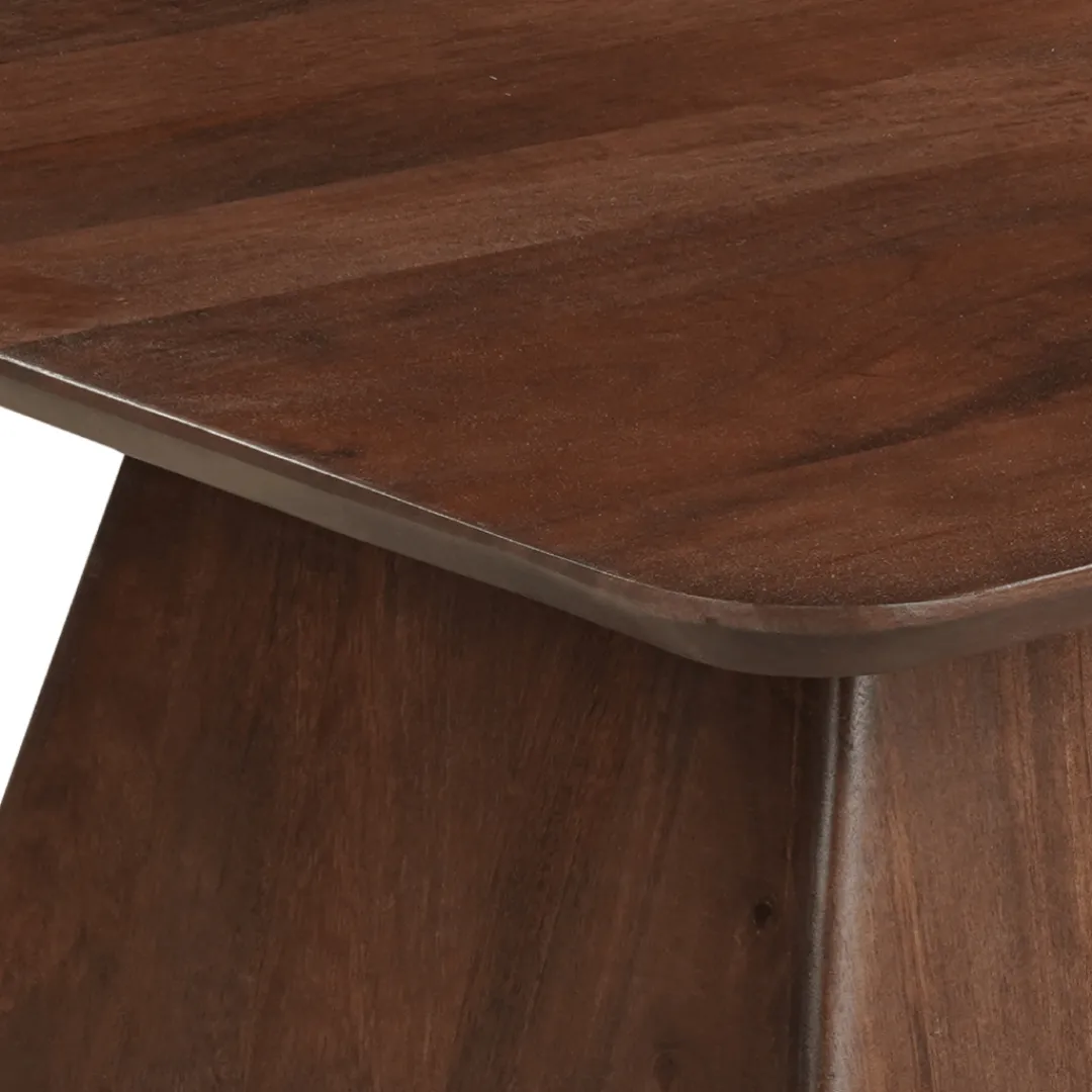 De salontafel Nova is een stijlvolle, vierkante bijzettafel gemaakt van massief mangohout. Dankzij het strakke ontwerp en de warme houtkleur past deze tafel perfect in zowel moderne als landelijke interieurs. De natuurlijke houttekening en de afgeronde hoeken geven deze tafel een elegante en tijdloze uitstraling.