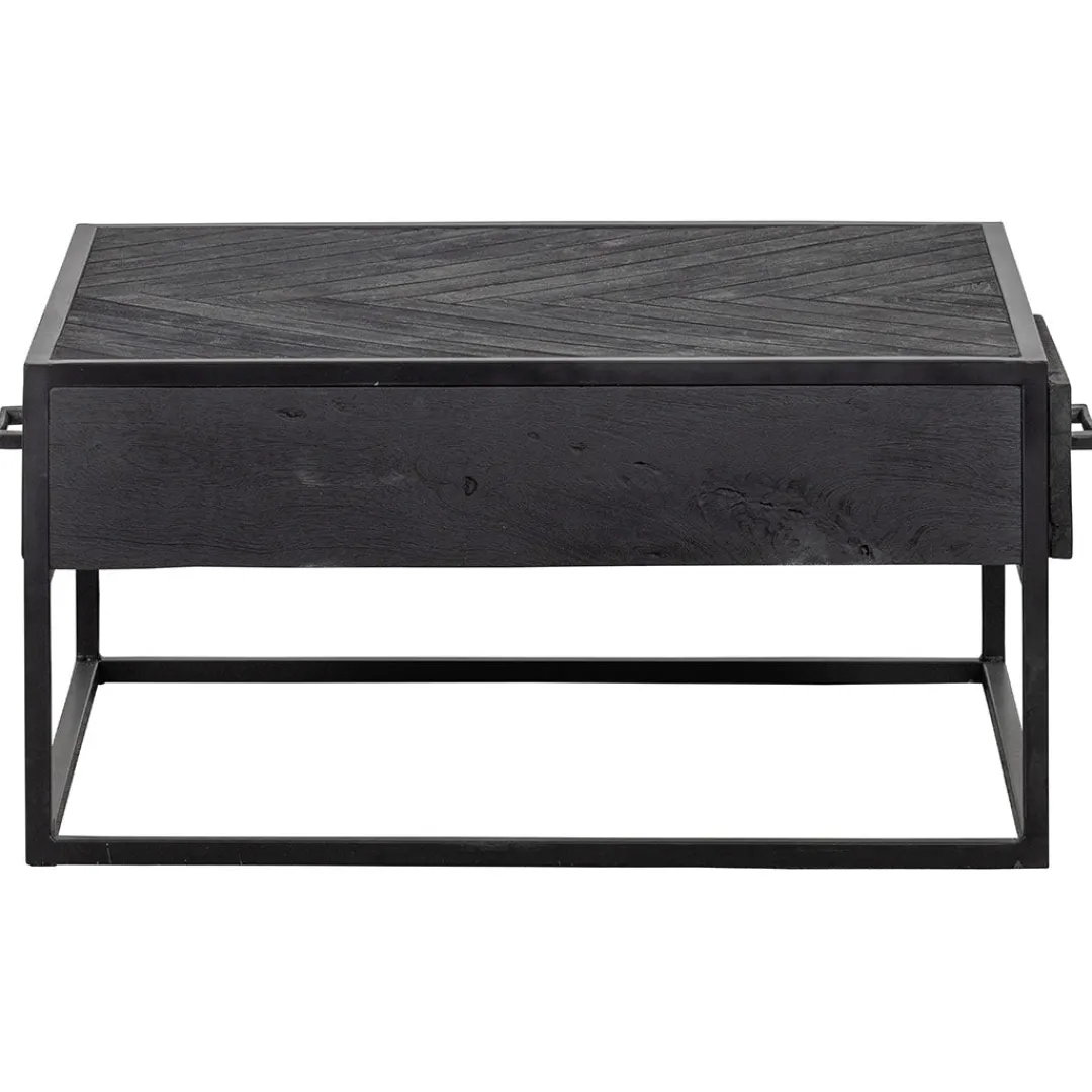 Deze stoere mangohouten salontafel Sienna Square krijgt door zijn visgraat motief een uniek, chique karakter. De tafel biedt ook nog voldoende opbergmogelijkheden voor bijvoorbeeld de afstandsbediening door de twee diepe lades. Het zwarte metalen frame en de zwarte houten delen vormen een stoere basis voor ieder interieur.