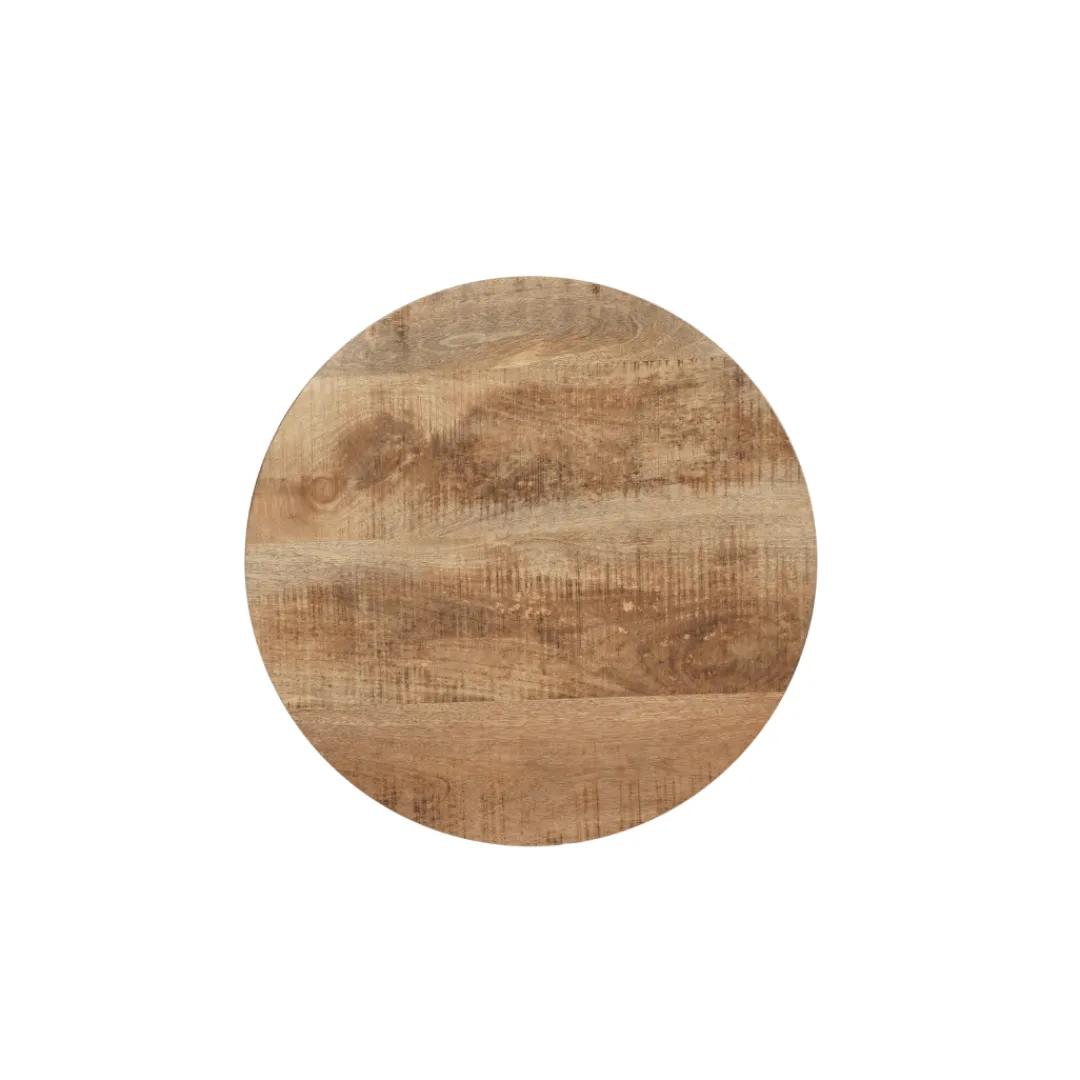 Over het mangohout worden meerdere lagen houtolie en een blanke, natuurlijke bijenwas aangebracht om het hout te beschermen tegen vocht, vuiligheid en kringen. De spinpoot is gemaakt van zwart gepoedercoat metaal.