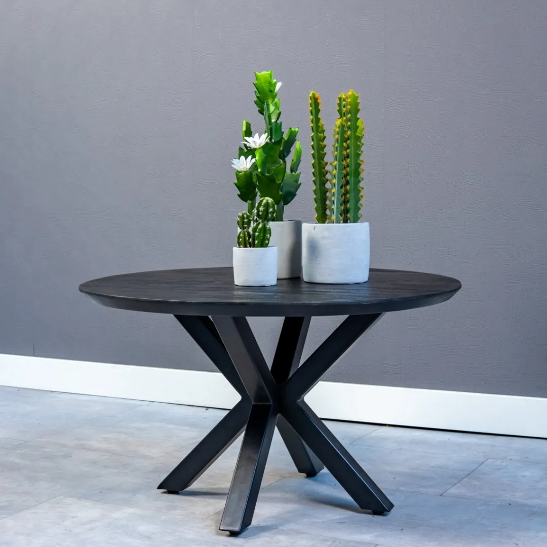 Over het mangohout worden meerdere lagen houtolie en een blanke, natuurlijke bijenwas aangebracht om het hout te beschermen tegen vocht, vuiligheid en kringen. De spinpoot is gemaakt van zwart gepoedercoat metaal.