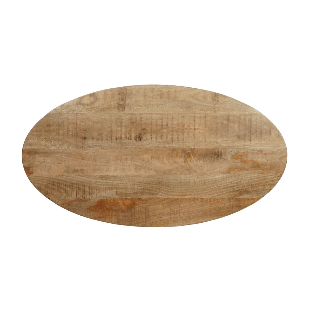 Over het mangohout worden meerdere lagen houtolie en een blanke, natuurlijke bijenwas aangebracht om het hout te beschermen tegen vocht, vuiligheid en kringen. De spinpoten zijn gemaakt van zwart gepoedercoat metaal.