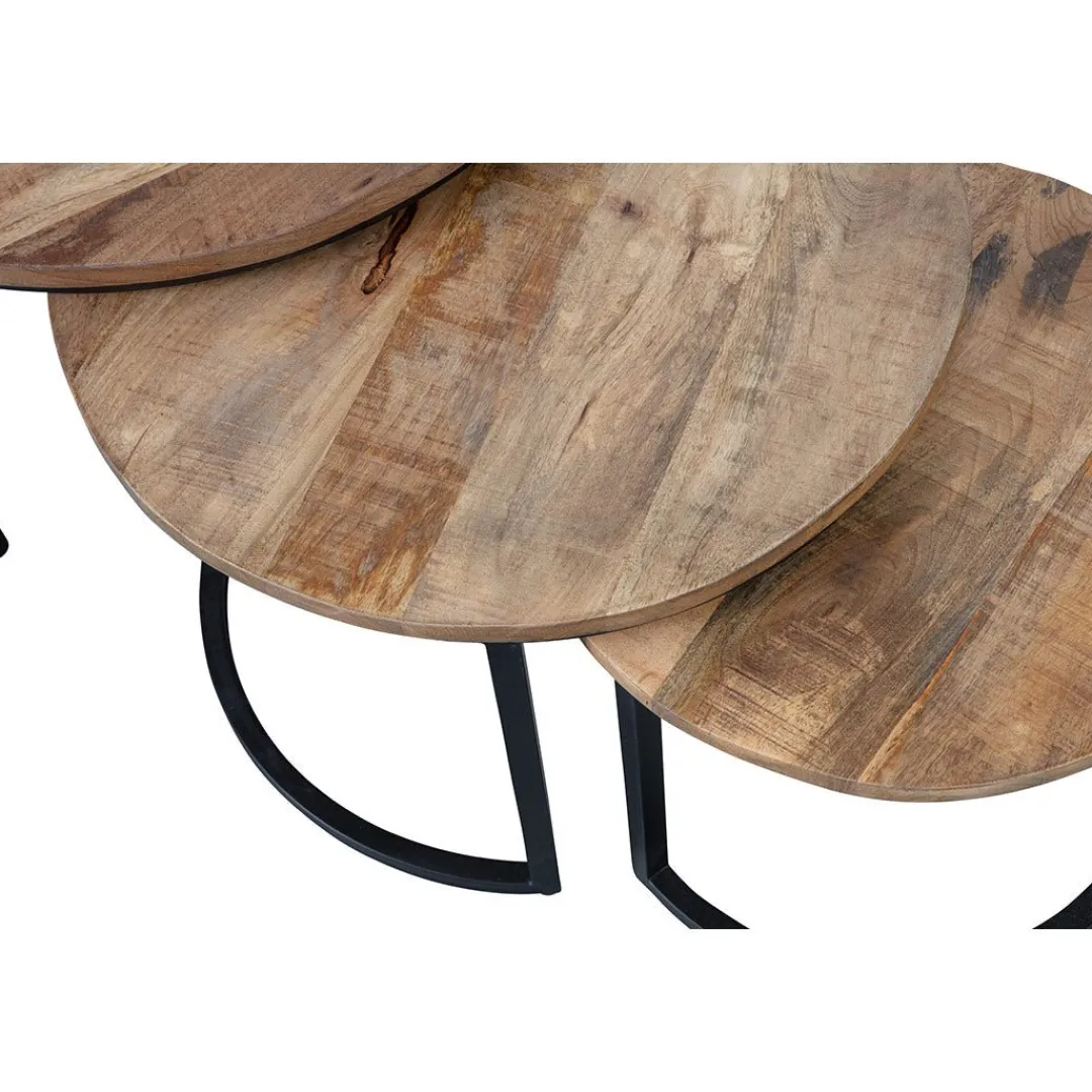 Met deze drie mangohouten salontafels kan je een speelse indeling geven aan jouw interieur. Je kan gemakkelijk zelf bepalen hoe je het beste van deze salontafels kan genieten door ze gewoon als salontafel of als bijzettafel naast de bank te gebruiken.