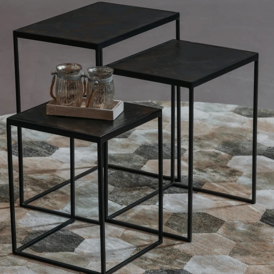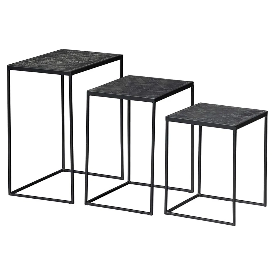 Deze salontafelset Dayton Black zal zonder twijfel een aanwinst zijn voor de woonkamer. De tafeltjes hebben een dun frame wat, in combinatie met het motief van de bladen, voor een stijlvolle look in huis zorgt! Je kan ze bij elkaar of gespreid in de ruimte plaatsen om het door jou gewenste effect toe te voegen aan de woonkamer.