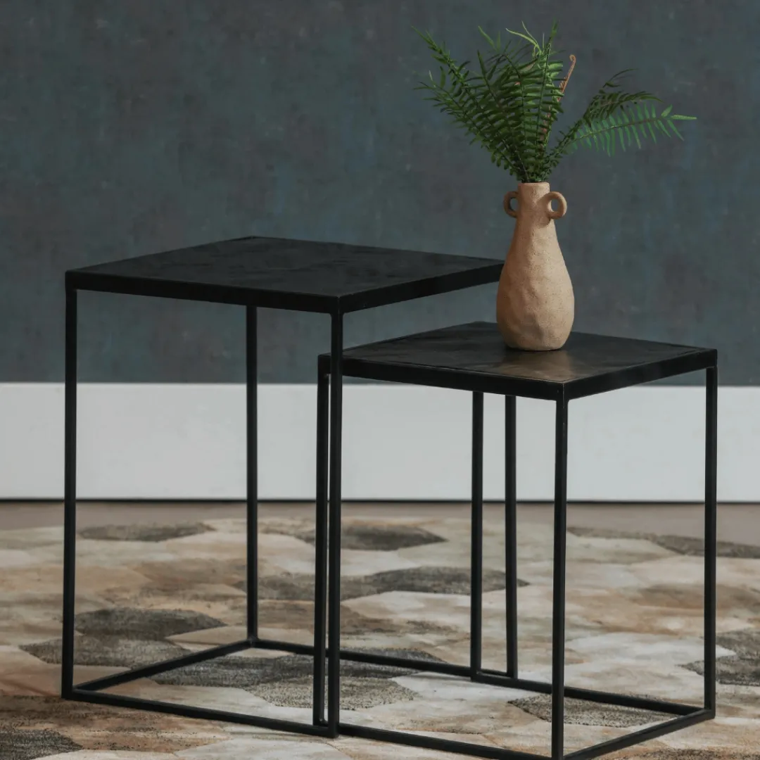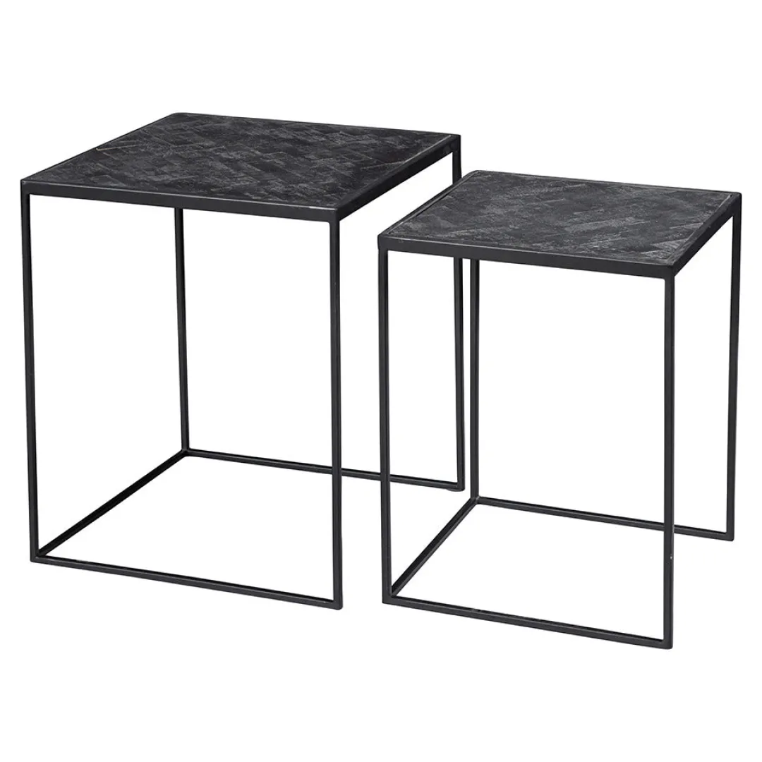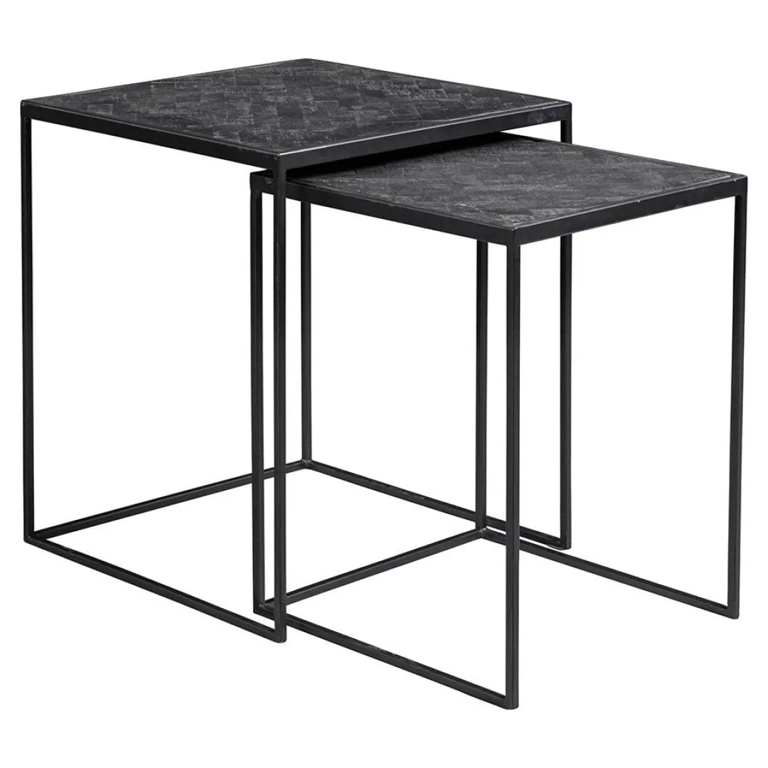 Ben je op zoek naar een chique salontafelset? De zwarte mangohouten salontafelset Dayton is zeer stijlvol door het blad met visgraatmotief en de slanke stalen poten. De tafels hebben een compact formaat waardoor ze op veel plekken passen. Je kan ze naast elkaar zetten, maar ook los van elkaar. Naast de bank of met een mooie plant of vaas erop, de mogelijkheden met deze tafeltjes zijn eindeloos.