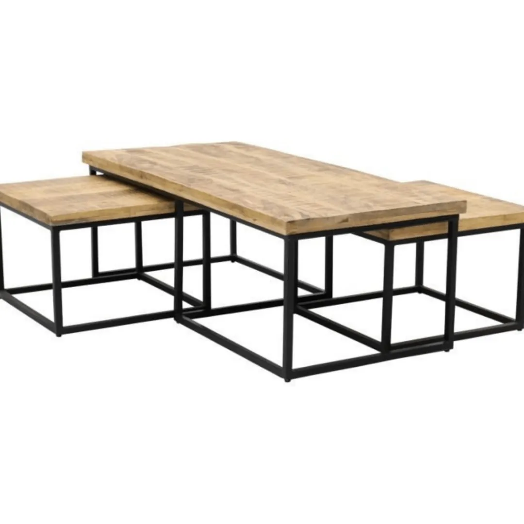 Onze unieke salontafelset Miami bestaat uit drie losse tafeltjes, de twee kleine tafeltjes passen precies onder het grote tafeltje. Je kan er ook nog voor kiezen om de tafeltjes te verspreiden door de kamer, zodat je bij elke hoek van de bank gewoon je drankje neer kan zetten.