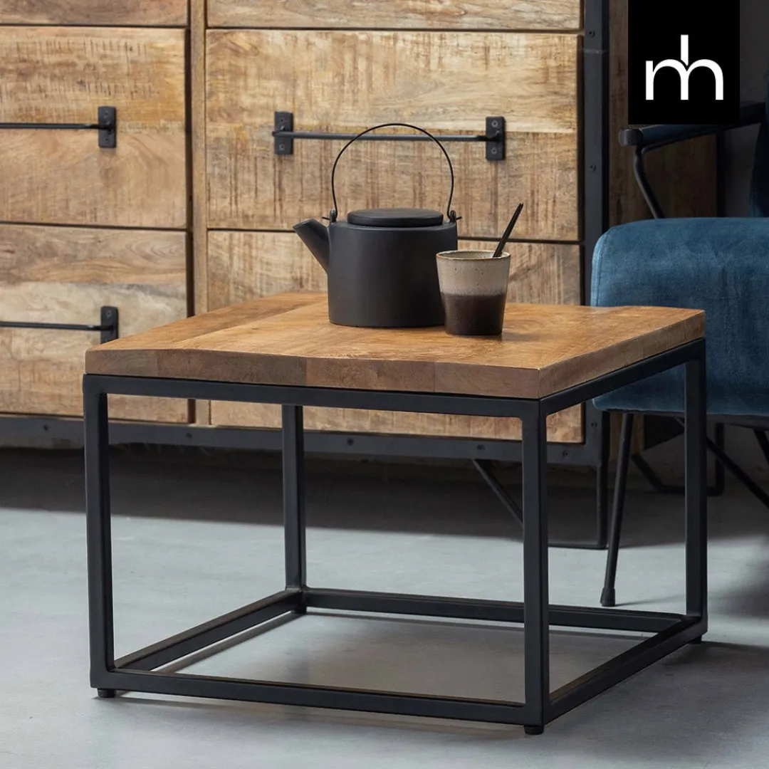 Over de massief mangohouten bladen worden meerdere lagen houtolie en een blanke, natuurlijke bijenwas aangebracht om het hout te beschermen tegen vocht, vuiligheid en kringen. De frames zijn gemaakt van zwart gepoedercoat metaal.