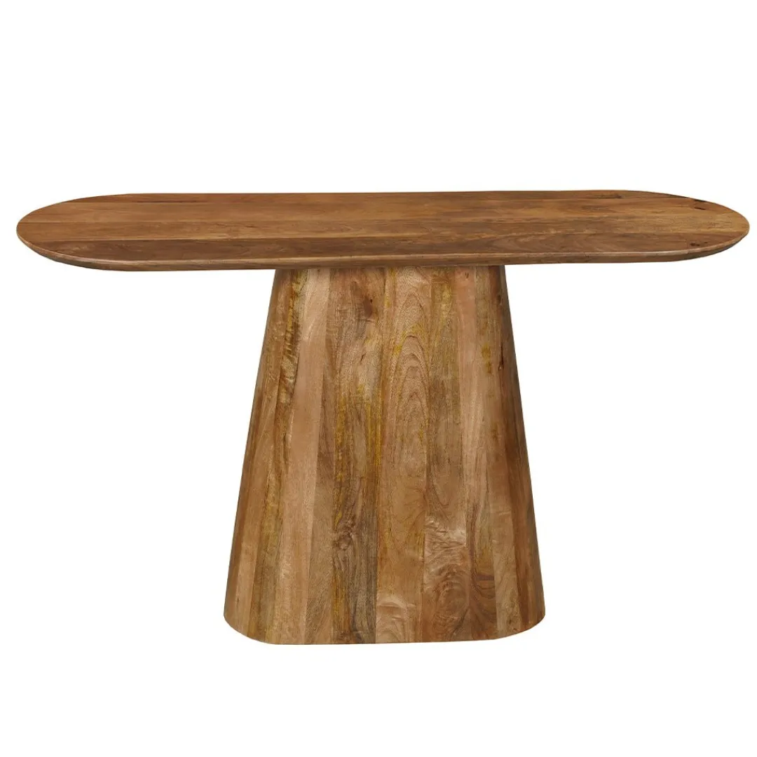 De Sidetable Nova Capsule 130 cm is een stijlvolle blikvanger voor jouw interieur. Het capsulevormige blad is gemaakt van hoogwaardig donkerbruin mangohout en rust op een stevig kegelvormig onderstel van hetzelfde materiaal. De warme uitstraling van het hout geeft elke ruimte direct een sfeervolle en natuurlijke touch.
