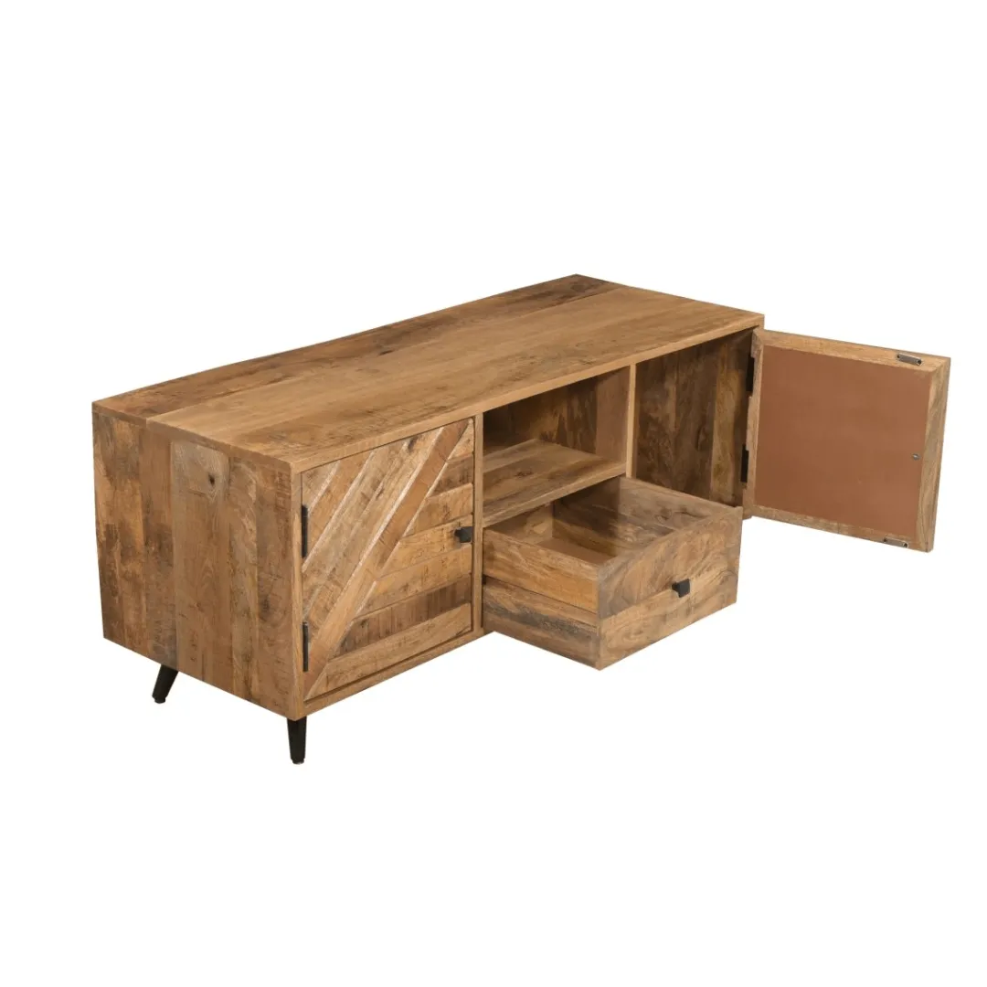 De Alamo-collectie is de perfecte combinatie van stoer en stijlvol. Dit prachtige mangohouten tv meubel maakt hier onderdeel van uit. Het unieke motief zorgt voor een robuuste uitstraling en is een verrijking in je interieur.