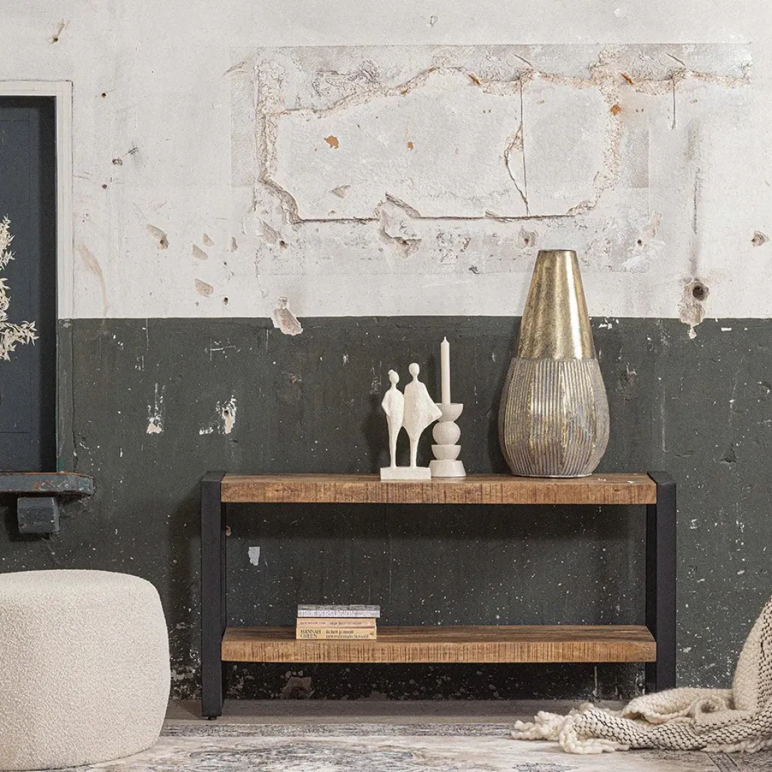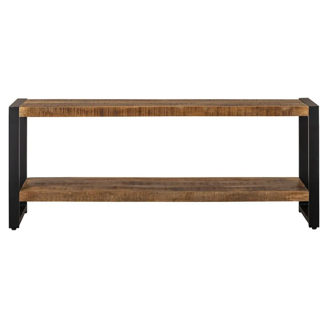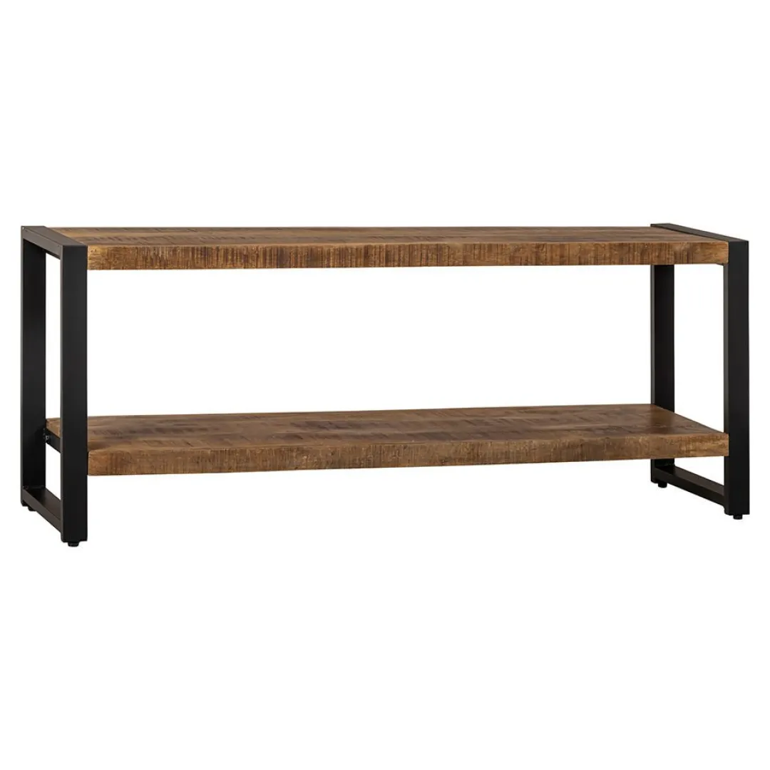 Het ruimtelijke televisiemeubel Britt heeft een klassiek ontwerp dat door het warme mangohout en de metalen poten in een industrieel effect heeft gekregen. Het meubel is ideaal om naast de televisie ook andere decoratieve voorwerpen op te plaatsen en het open vak is ideaal om apparatuur, zoals spelcomputers of tv-ontvangers, een plek te geven.