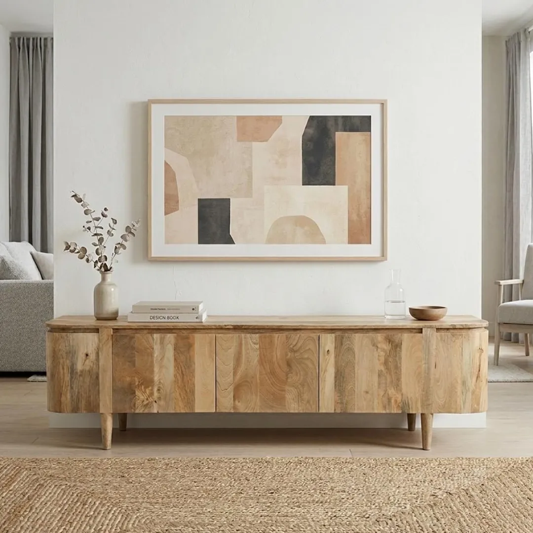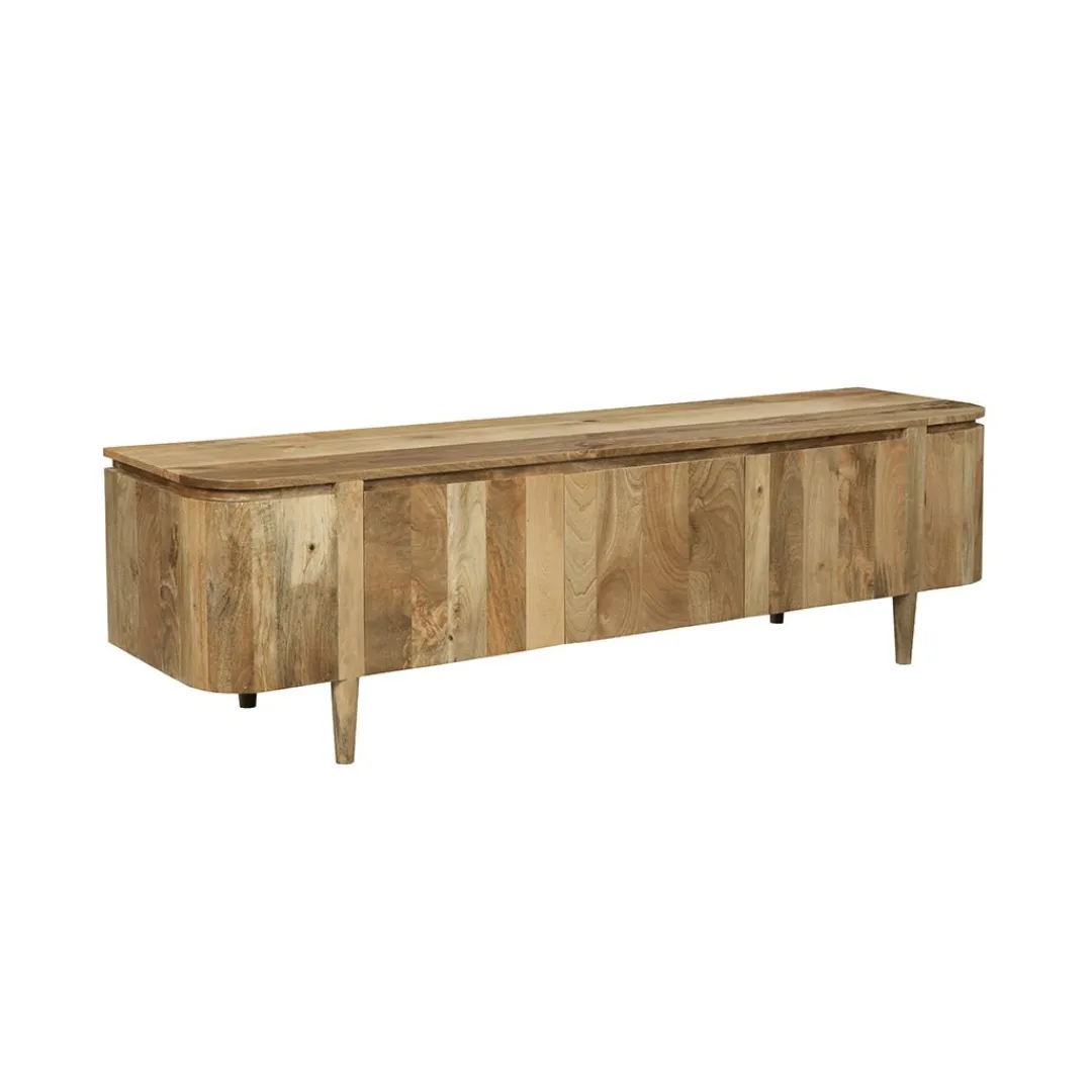 Mangohouten TV Meubel Pilano 180 cm geeft je zithoek een warme en stijlvolle uitstraling. De afgeronde vormen zorgen voor een zacht en modern ontwerp dat mooi past in verschillende woonstijlen.