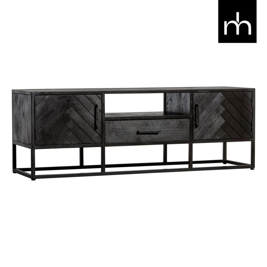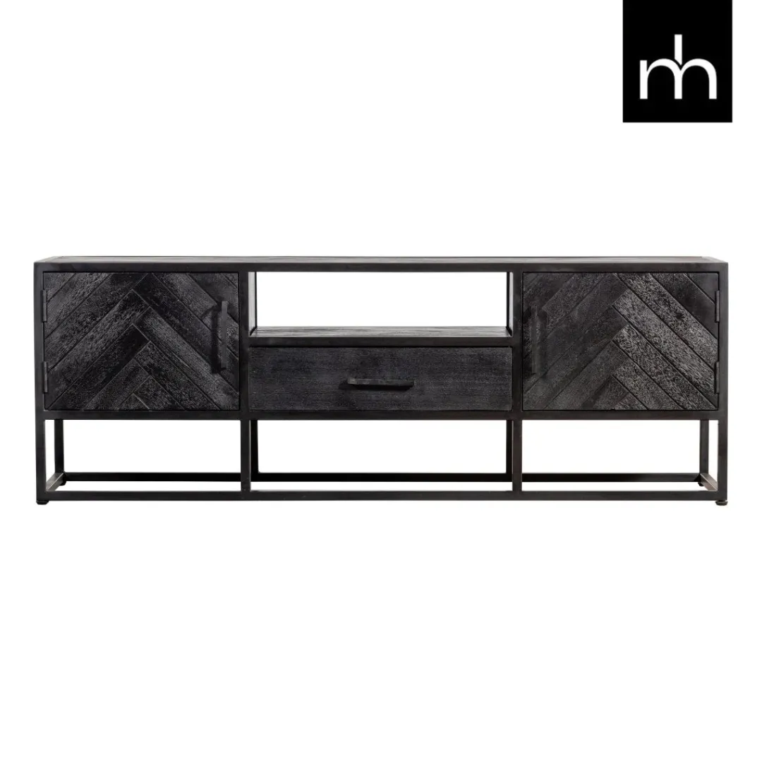 Dankzij zijn elegante uitstraling kan je met het smalle TV Meubel Toronto in de kleur zwart alle kanten op. Het meubel past niet alleen door zijn formaat, maar zeker ook door het trendy visgraatpatroon in ieder interieur. In het open vak kunnen elektronische devices neergezet worden. De ruimtes achter de deurtjes en de enkele lade bieden daarnaast de nodige opbergruimte.