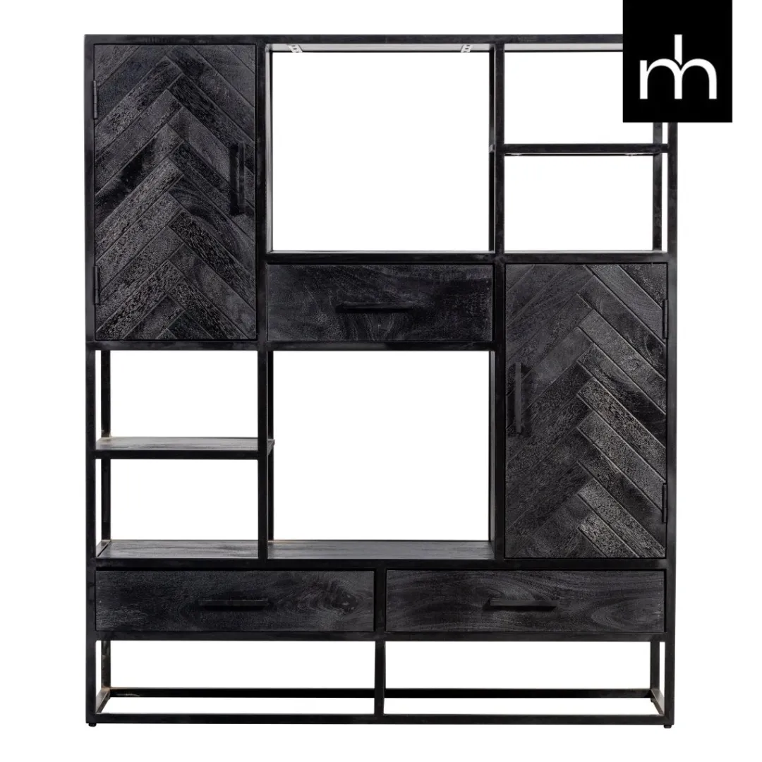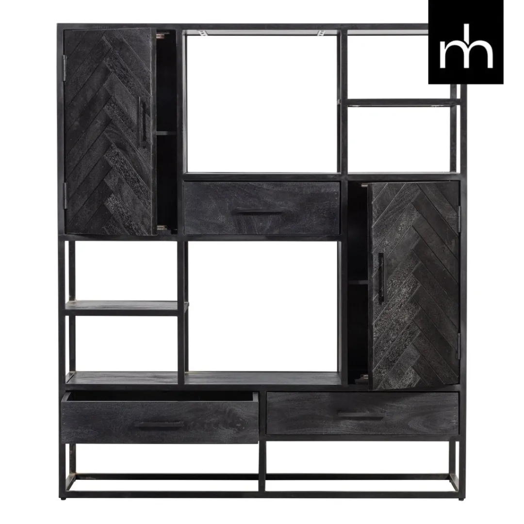 Deze stijlvolle vakkenkast uit de Toronto-serie matcht door zijn zwarte kleur met ieder interieur. Zo past hij zowel in een industrieel als een landelijk interieur. Daarnaast is hij met een breedte van 120 erg compact waardoor hij ook in kleinere ruimtes een plekje kan krijgen. De kast heeft door de drie lades, vier open vakken en de ruimtes achter de deurtjes verschillende opbergmogelijkheden.