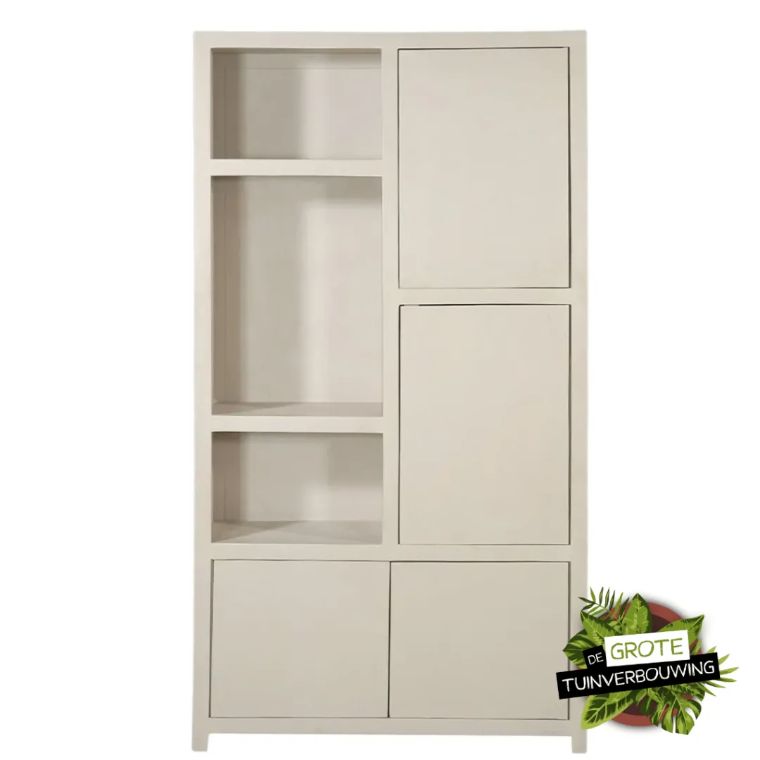 Dankzij de solide constructie en het zorgvuldige vakmanschap staat de wandkast Phoenix garant voor langdurige kwaliteit. De kast beschikt over 3 open vakken en 4 deuren, waardoor je voldoende ruimte hebt om boeken, decoratieve items en persoonlijke bezittingen overzichtelijk op te bergen. De open vakken zijn perfect om je favoriete accessoires mooi tentoon te stellen, waardoor je jouw woonruimte een persoonlijk en stijlvol accent kan geven.