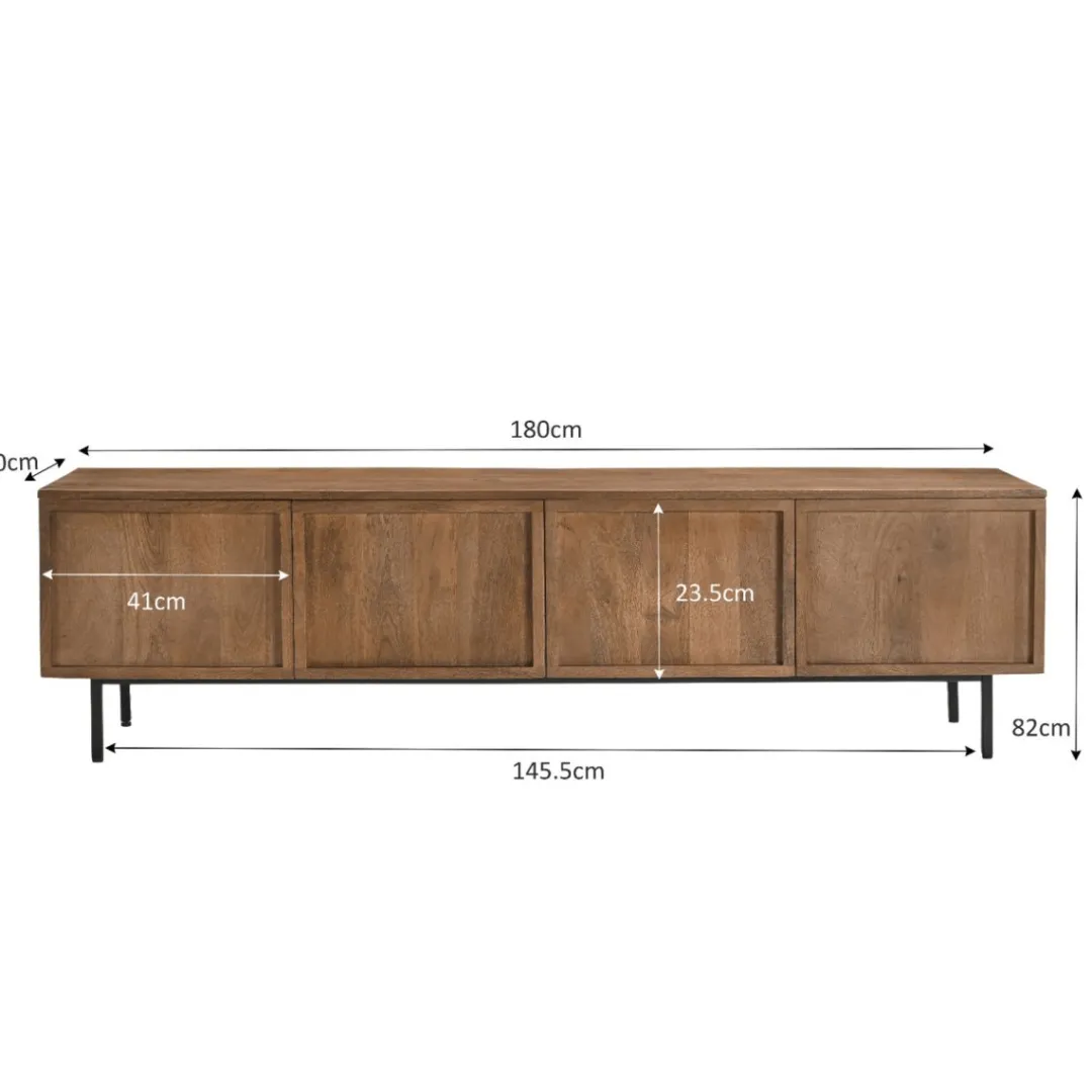 De kasten uit de Elan collectie combineren een sfeervolle uitstraling met een eigentijdse look. Het slanke zwartstalen onderstel voegt een verfijnde touch toe, terwijl het duurzame hardhout in een lichtbruine naturel tint zorgt voor een warme en uitnodigende sfeer. De opvallende vlakken bieden een stijlvol accent in je interieur.