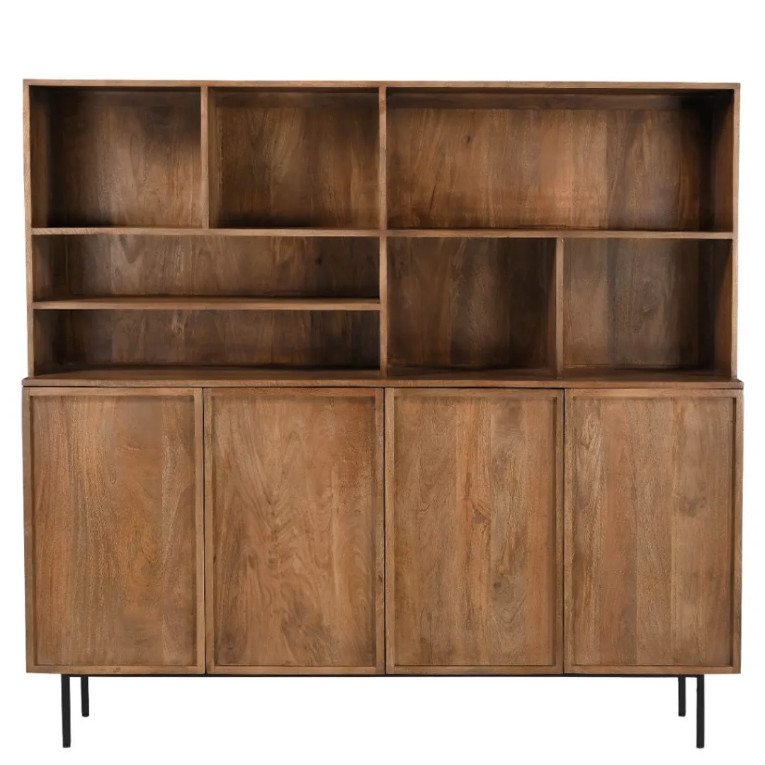 De kasten uit de Elan collectie combineren een sfeervolle uitstraling met een eigentijdse look. Het slanke zwartstalen onderstel voegt een verfijnde touch toe, terwijl het duurzame hardhout in een lichtbruine naturel tint zorgt voor een warme en uitnodigende sfeer. De opvallende vlakken bieden een stijlvol accent in je interieur.